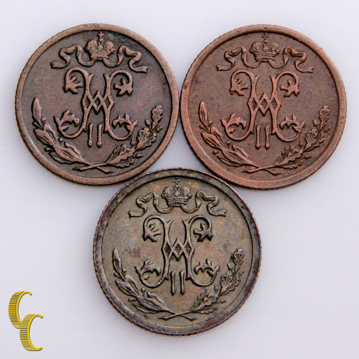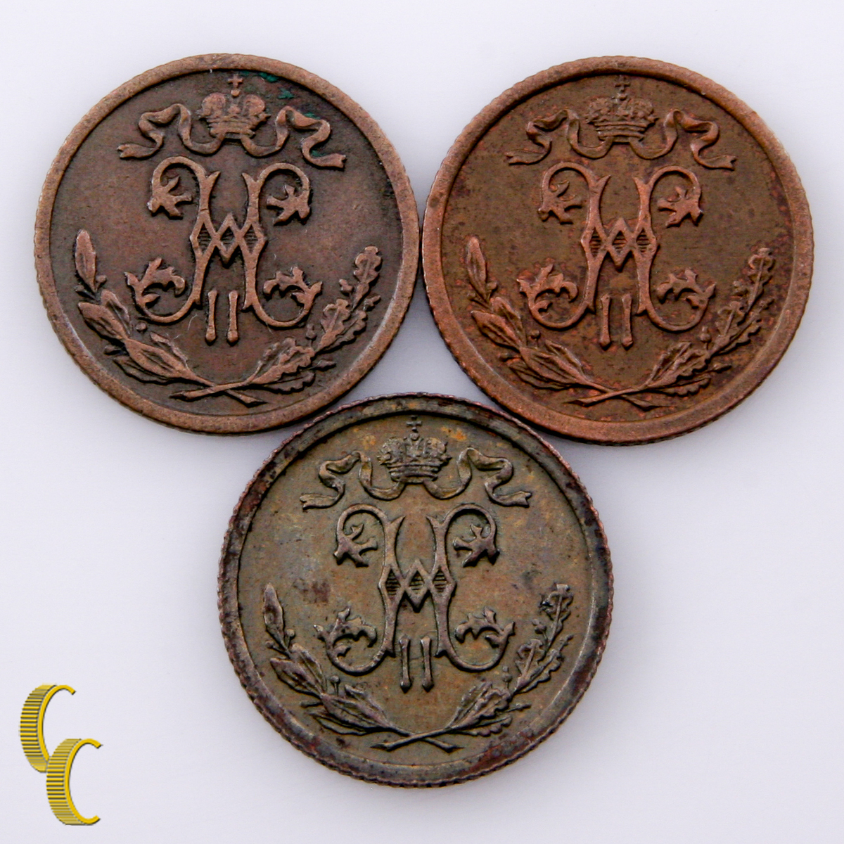 1899-1912 Russland 1/2 Kopeks Lose 3 Münzen alle (VF) sehr feiner Zustand