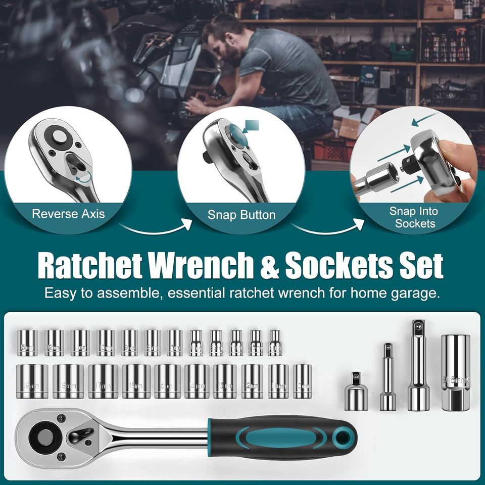 This 257-Piece Complete Hand Tool Kit provides a full range of essential tools for home repairs, vehicle maintenance, DIY projects, and everyday tasks. Designed for both beginners and experienced users, this set is organized inside a compact portable toolbox and includes everything from wrenches and screwdrivers to sockets, pliers, cutting tools, fasteners, and more.