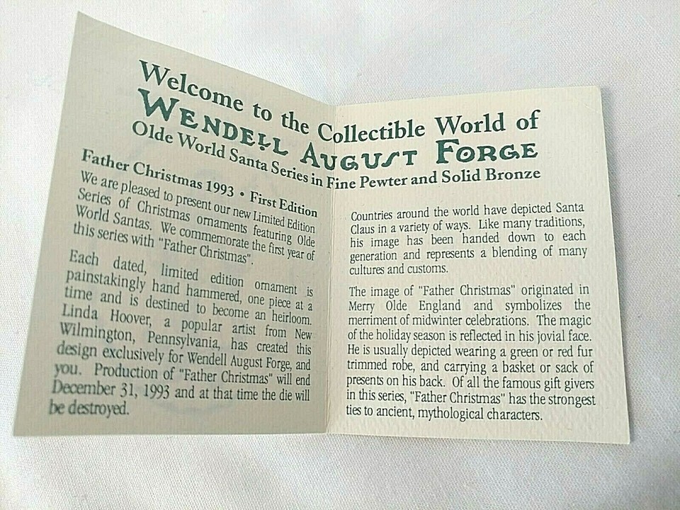 1st Edition Santa 1993 Wendell August Forge Bronze Father Christmas Ornament