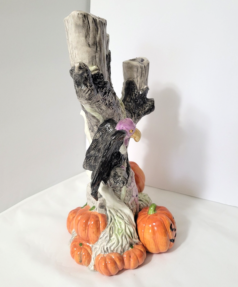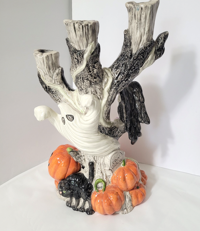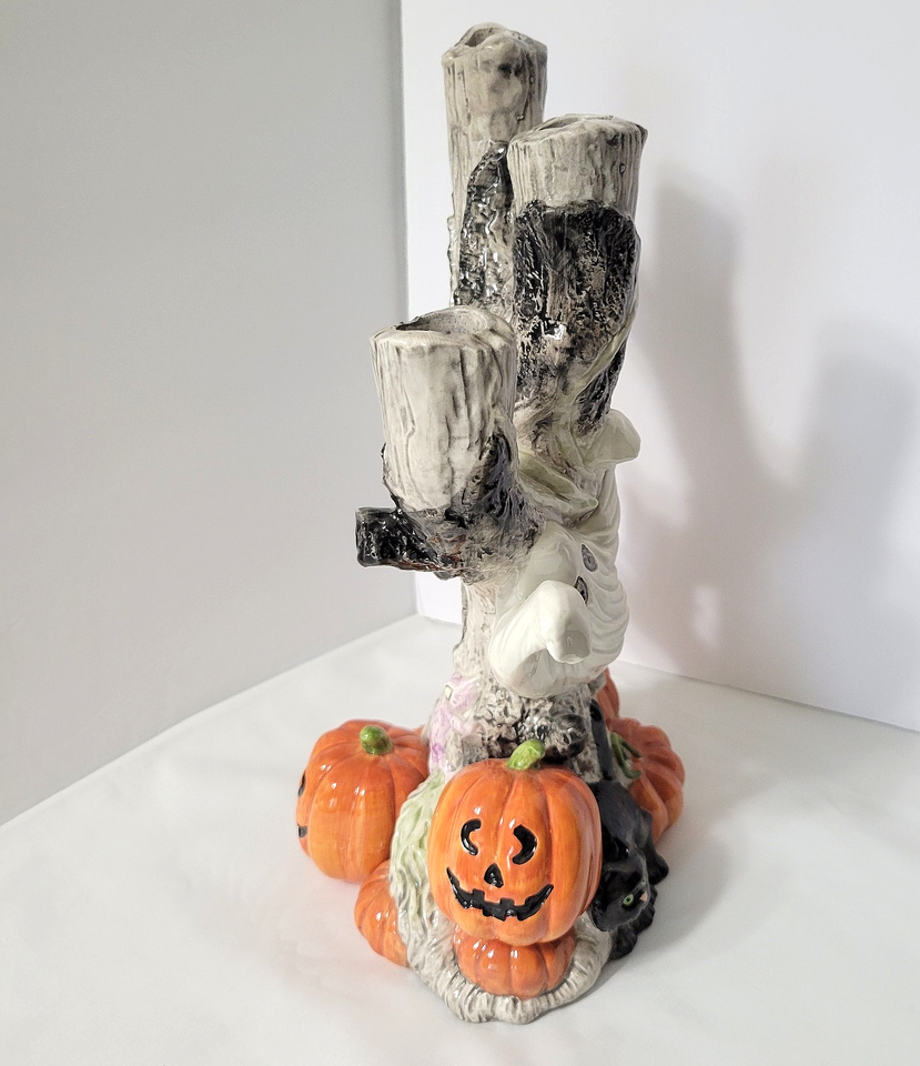 VTG Halloween Fitz & Floyd 3-Branch Candle Holder 1988 Ghost Vulture Pumpkin Cat
