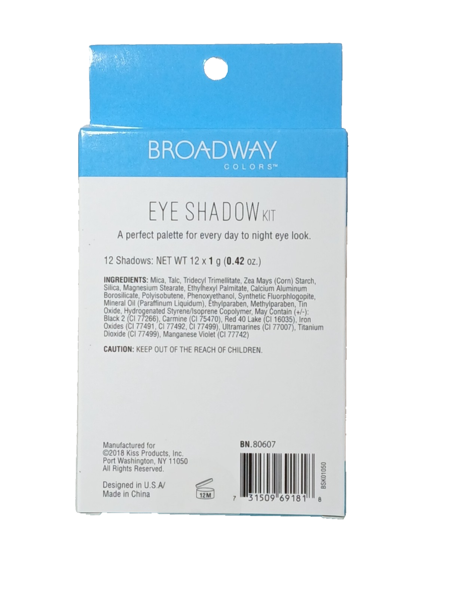 The BROADWAY Eyeshadow Kit contains 12 matte and shimmer shades. Benefits: Create glam and sultry looks for day and night looks. 12 complementary shades. Take your makeup look from day to night with 1 versatile eyeshadow palette.