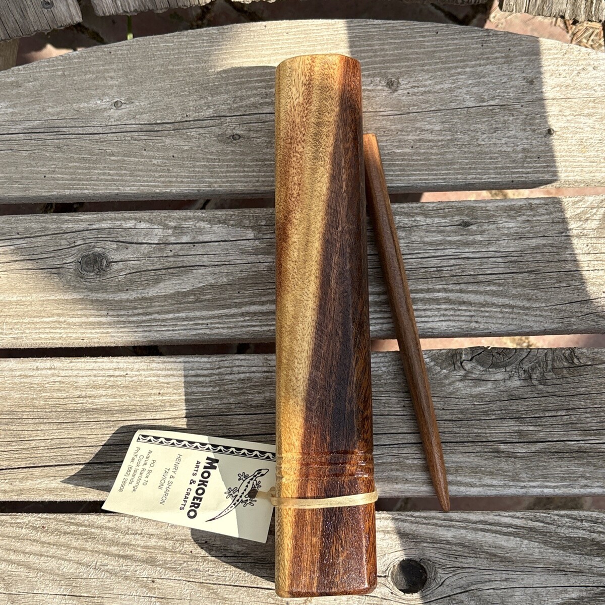 Hand Carved Ceremonial Slit Drum + Stick Raintree Cook Islands