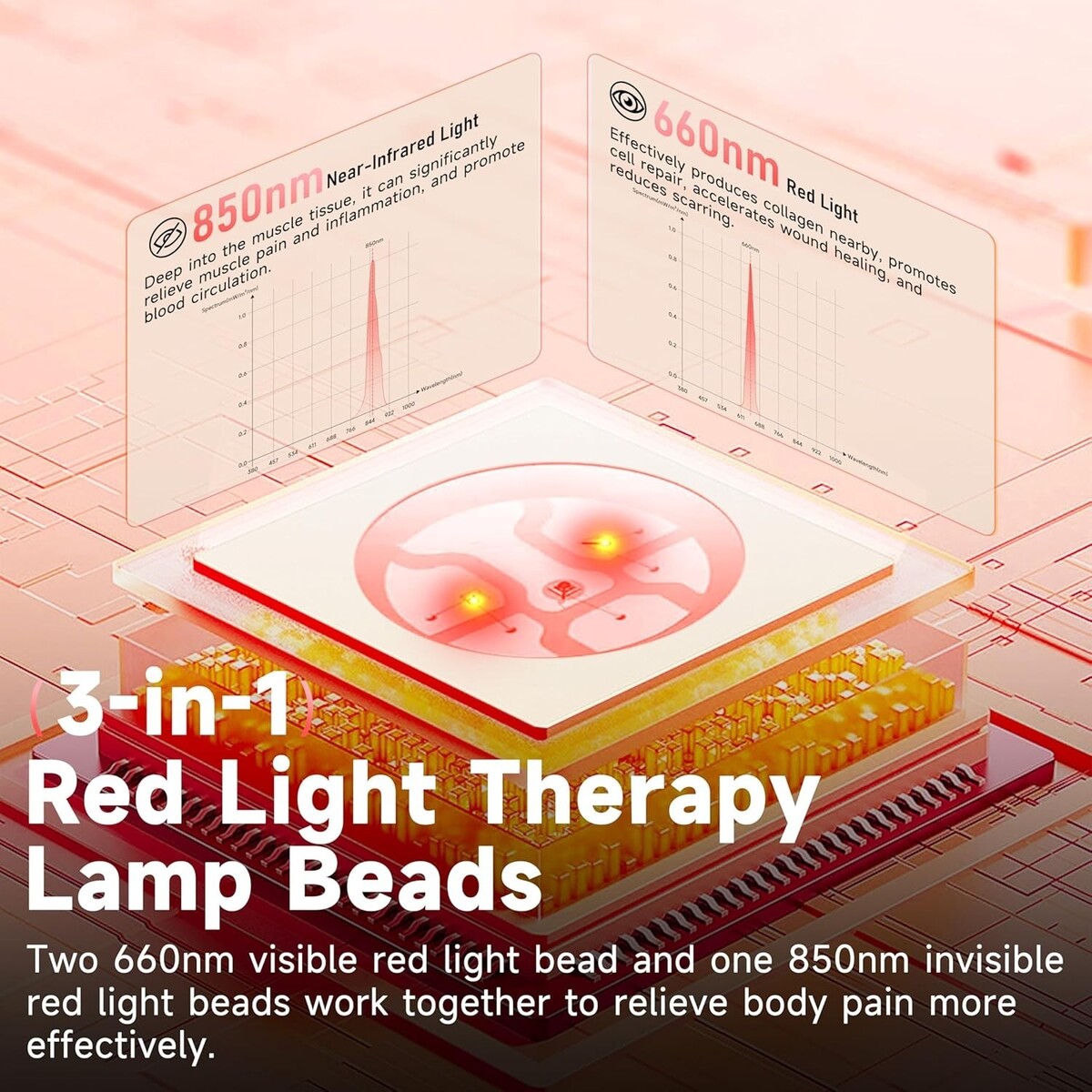 Home Comfort Red Light Therapy: The Red Light Therapy Mat comes with 1370 red LED beads, each containing 3 LED chips (2pcs 660nm LED chip and 1pcs 850nm near infrared LED chips). This unique blend ensures that whole-body red light therapy is comprehensive and able to precisely target a wide range of body's issues.