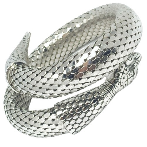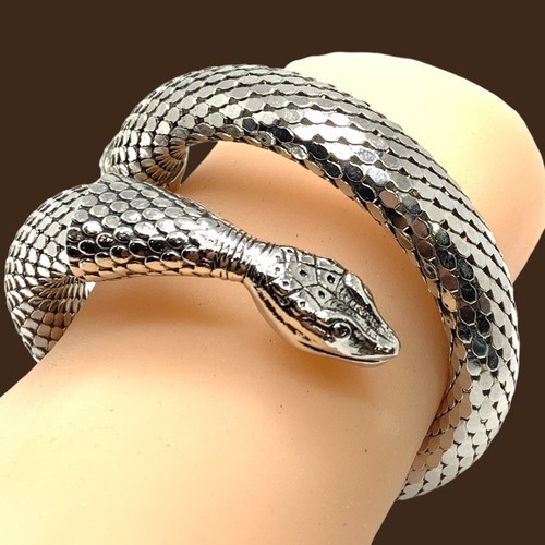 VINTAGE WHITING DAVIS SNAKE BRACELET Mesh Silver Tone Double Coil Serpent.
