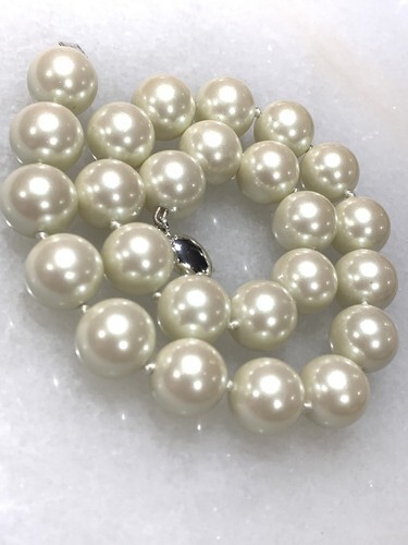 Brooks Brothers Sterling Silver 925 Clasp X LargeWhite Glass Pearl 15” necklace