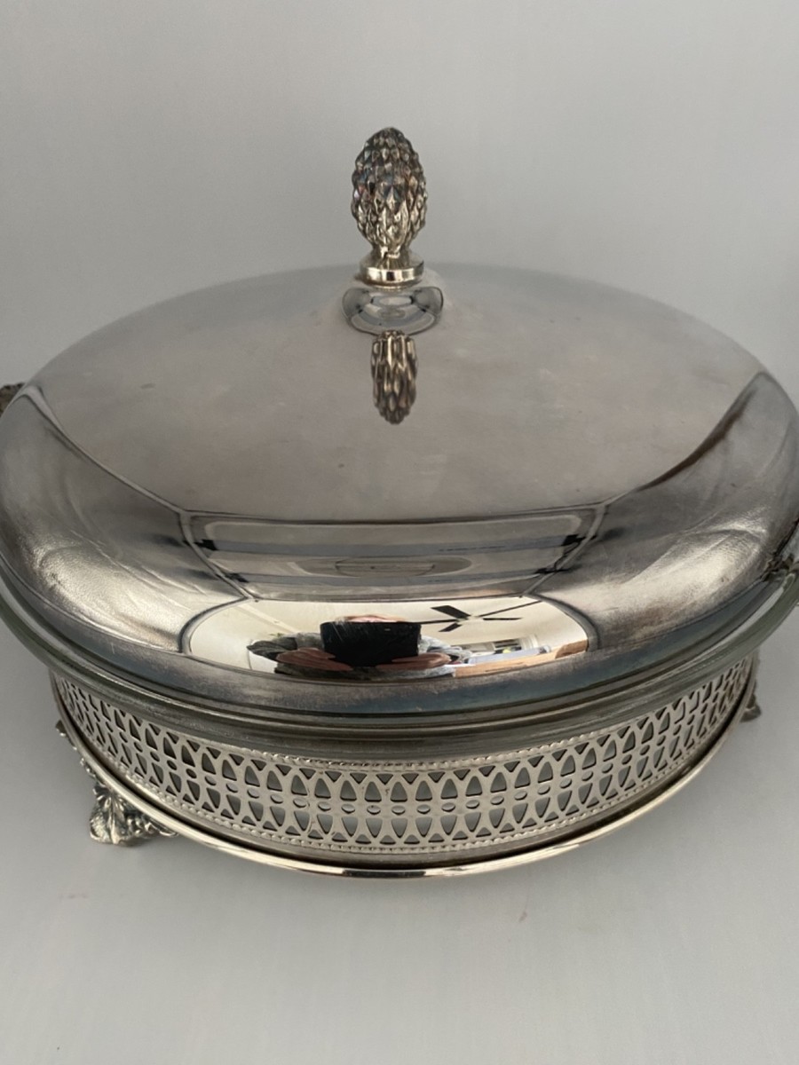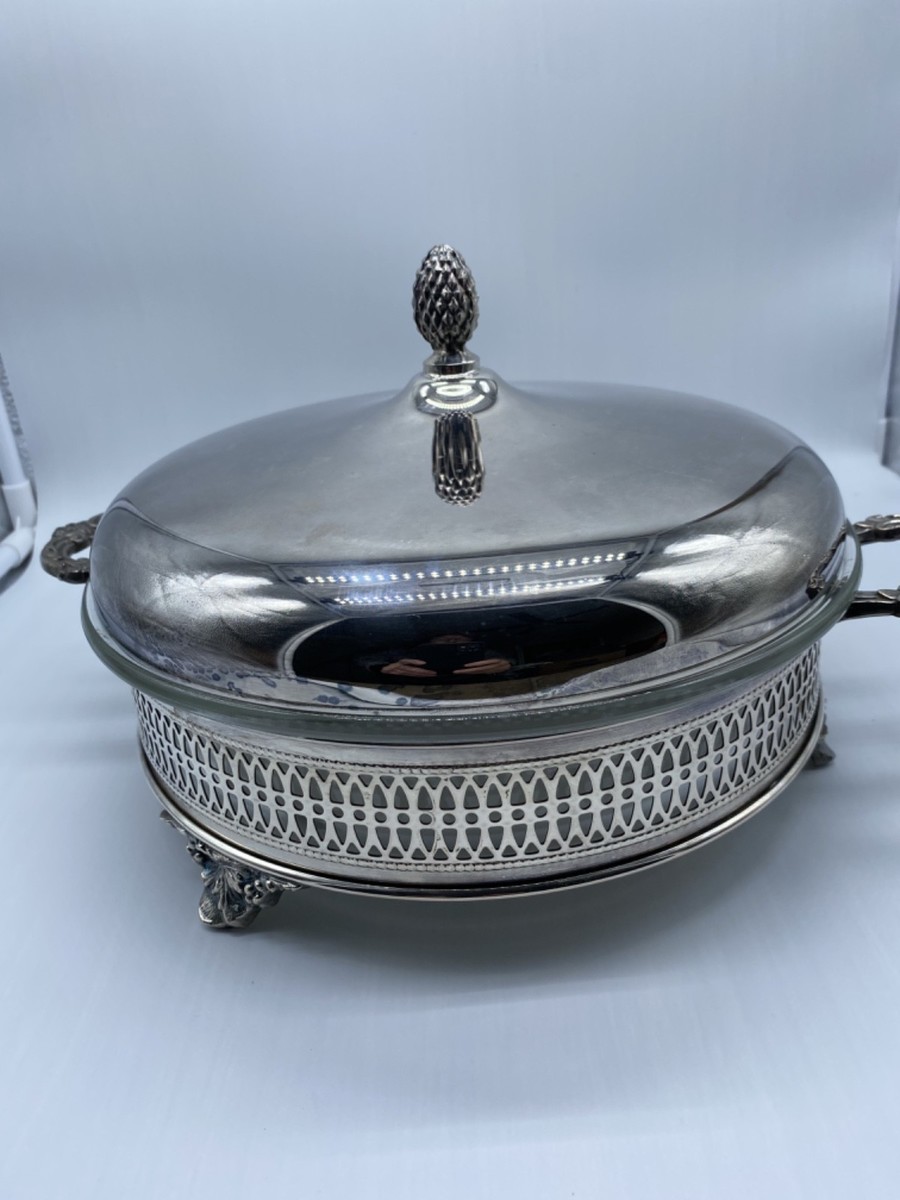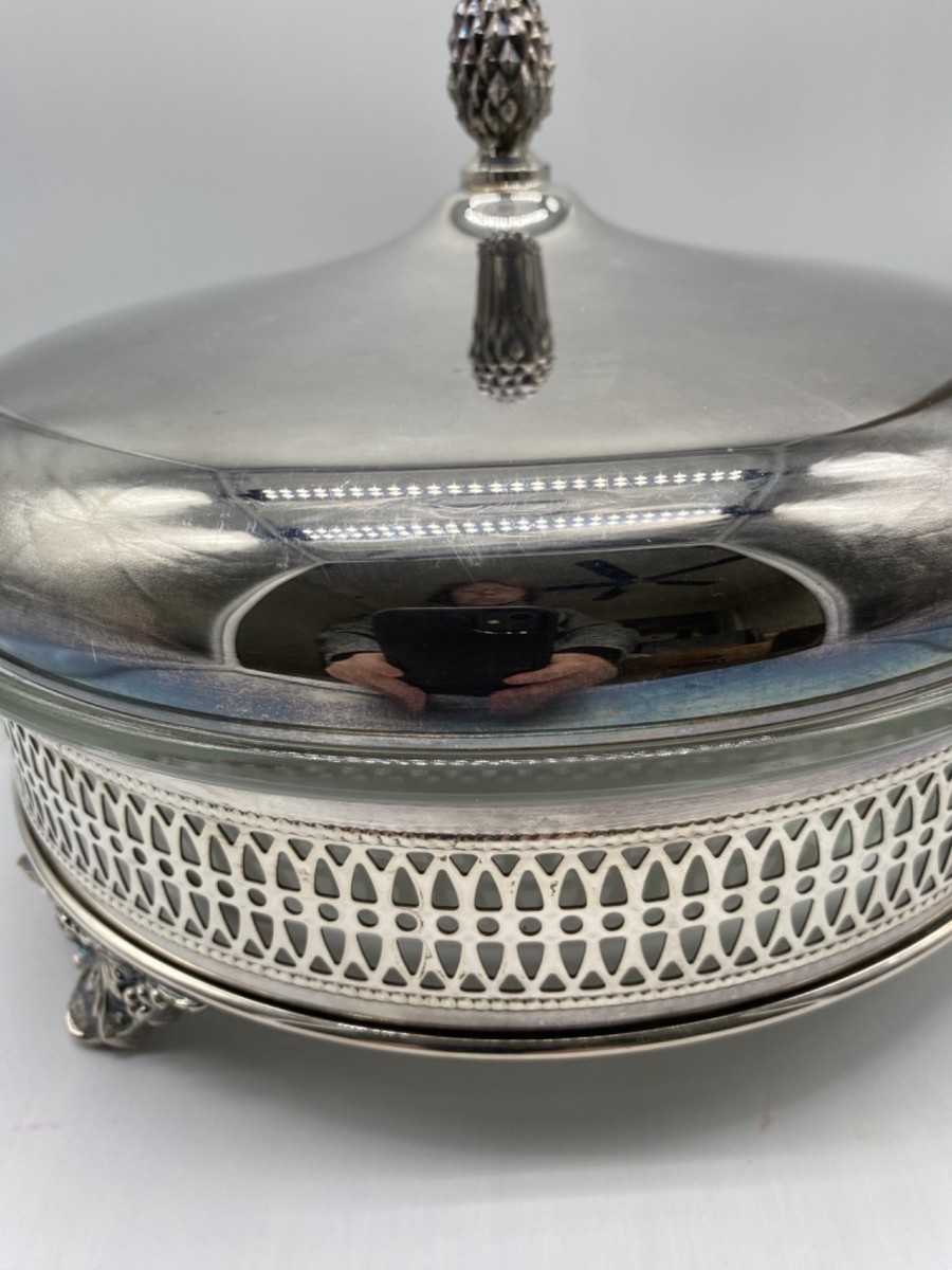 Vintage Sheffield Silver Co. Covered casserole Glasbake Divided Insert Bs325