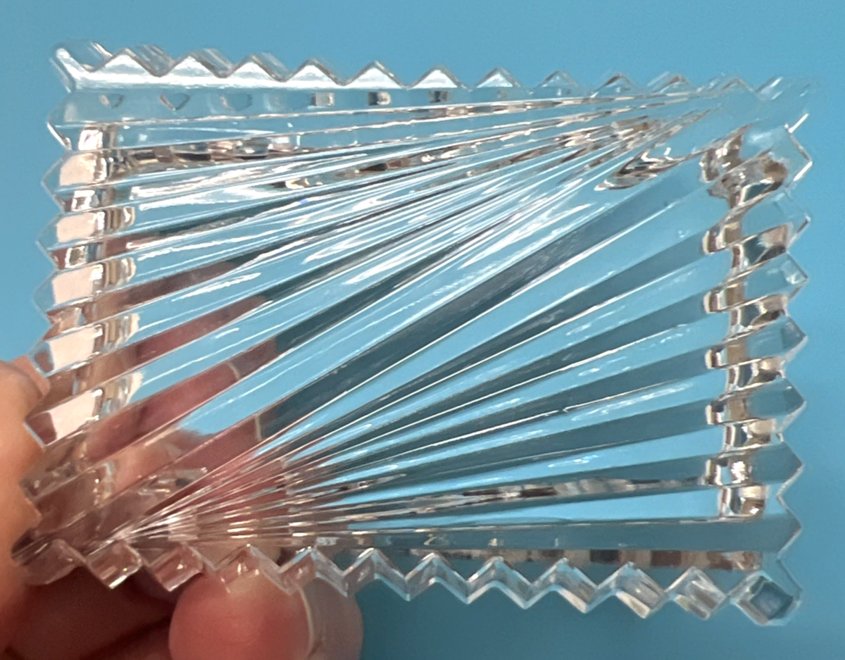 Vintage Very Deco Sharp Cut Rectangle Sharp Pointed Open Glass Salt Dip 2.5