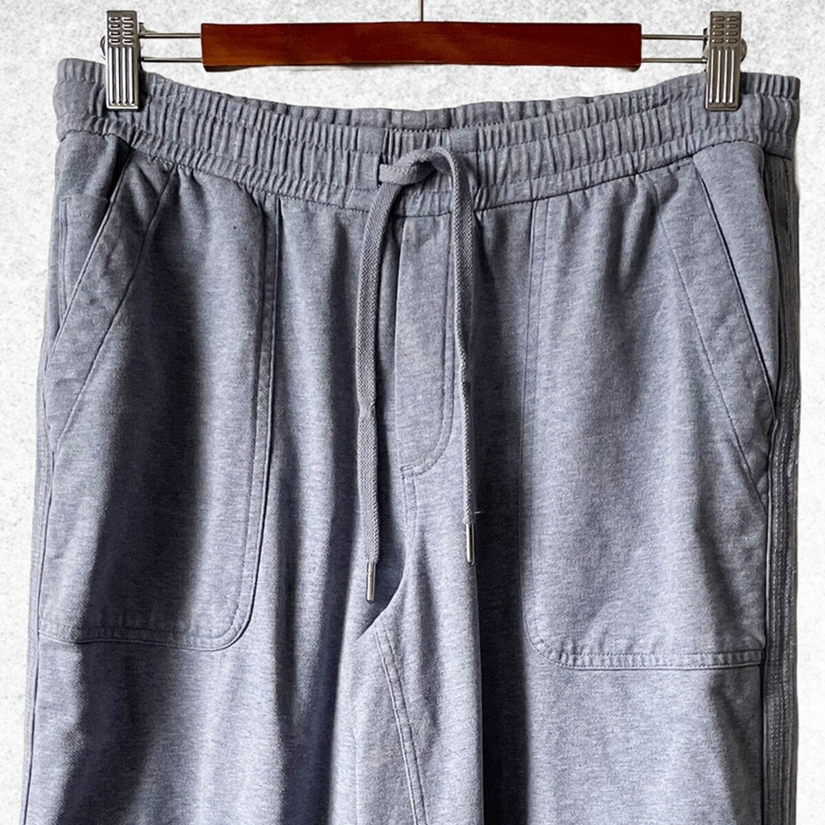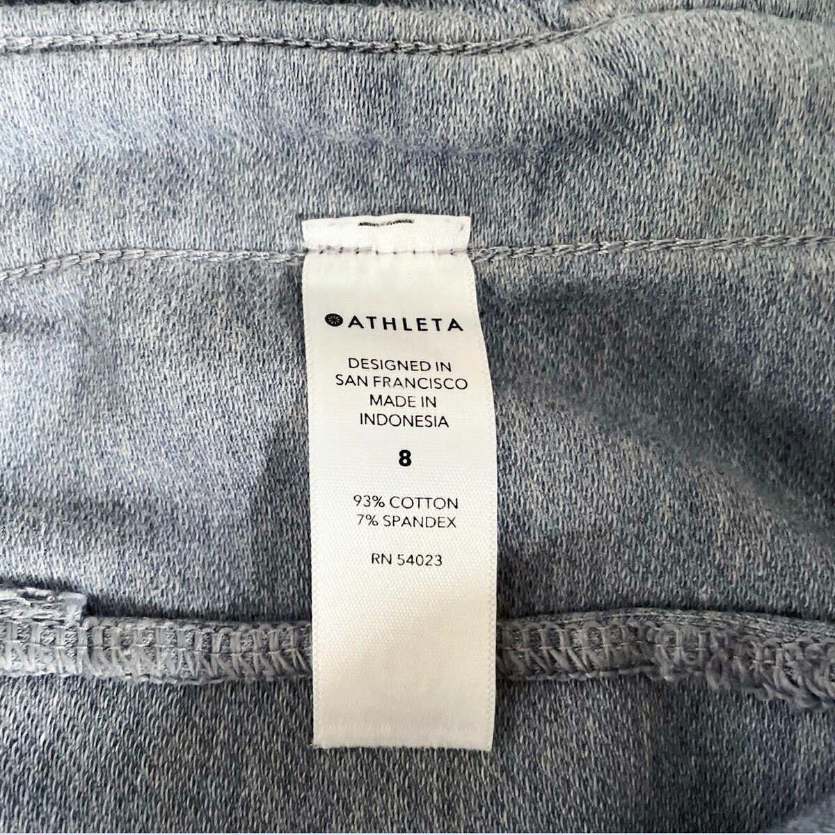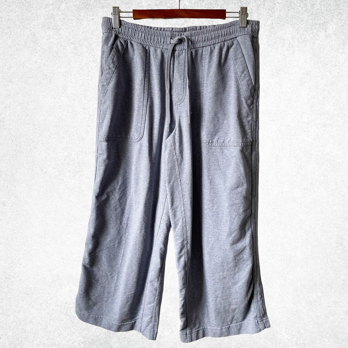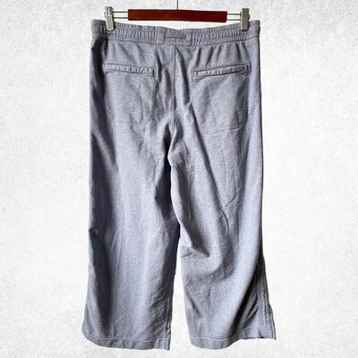 Athleta Women's size 8 Blue Farallon Heathered Wide Crop Pants. Comfy knit sweatpants. 93% Cotton, 3% Spandex; Machine Wash. Excellent condition.