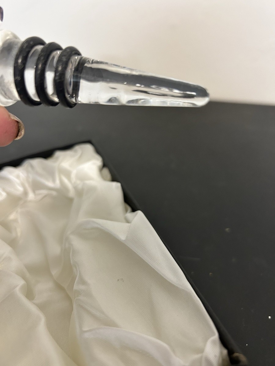 The Vtg Murano Glass Deco Collection Blue/ White Starfish Wine Bottle Stopper is a unique and artistic addition to any kitchen or dining room. Hand-blown from glass with a beautiful blue and white color palette, this vintage original piece features an art deco style design with a starfish theme. The Murano brand ensures quality craftsmanship, making this bottle stopper a standout piece for all occasions. Perfect for adding a touch of elegance to your home, this hand wash only accessory is sure to be a conversation starter.