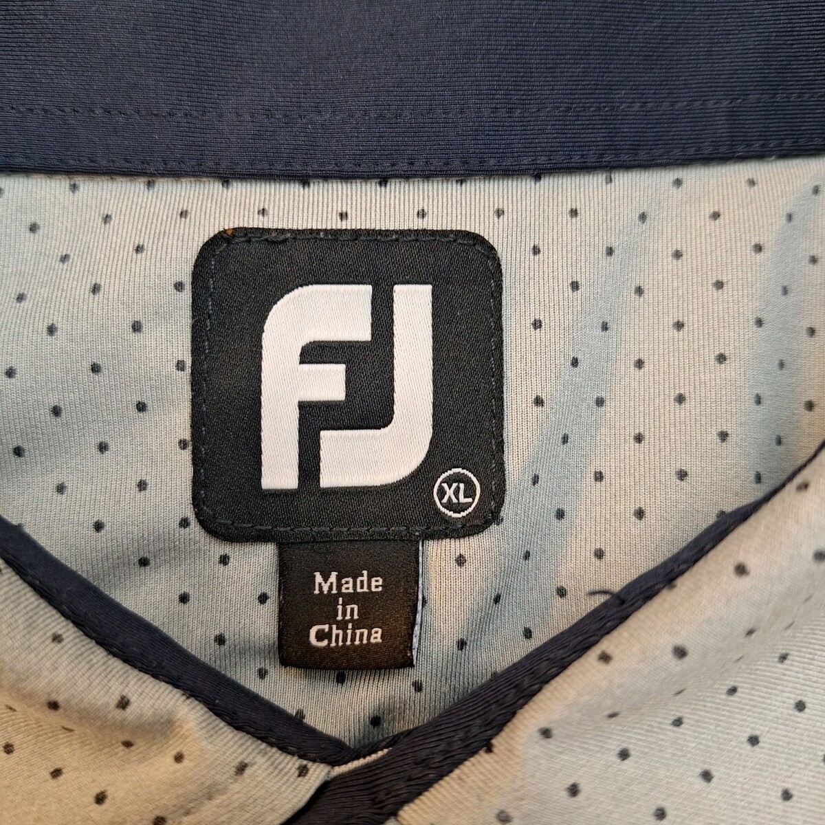 FootJoy FJ Golf Polo Shadow Wood Mens Sz XL Grey With Navy Dots & Inside Collar