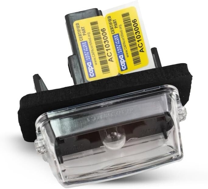 Replacement license plate light assembly for 2012?2017 Toyota Camry models. This unit is CAPA certified for proper fit and finish and can be installed on either the driver or passenger side. Features a clear lens and durable ABS housing with integrated connector for plug-and-play installation.