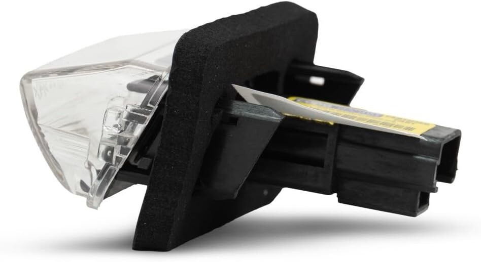 New, unused license plate light assembly. Clear lens with foam gasket intact. No cracks, discoloration, or damage.