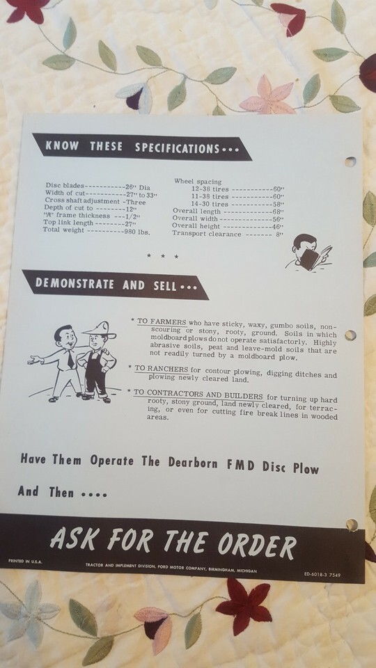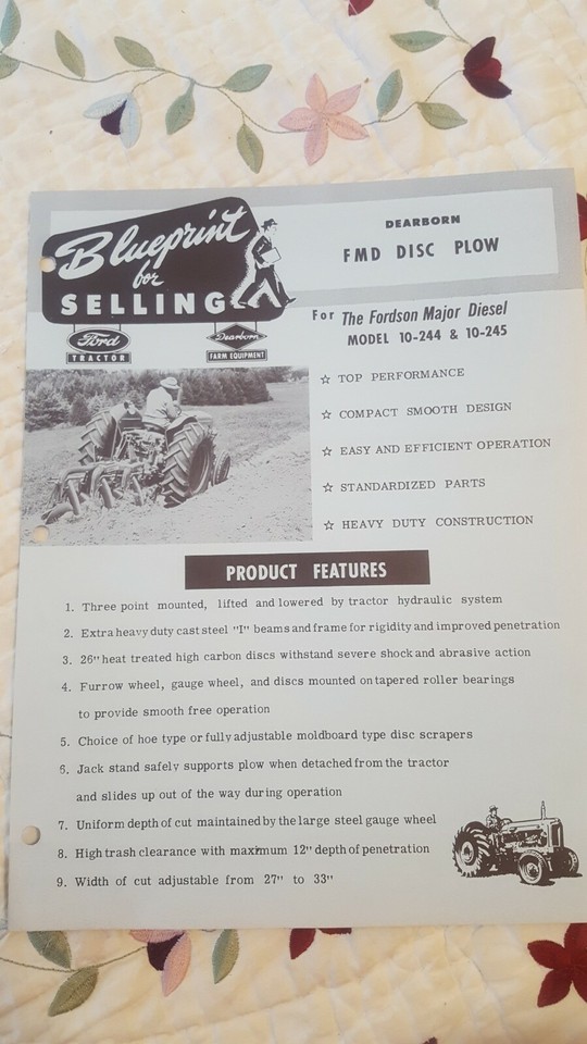 Vintage Blueprints For Selling Dearborn FMD Disc Plow