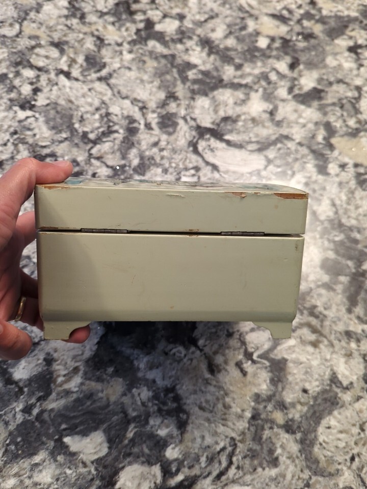 some paint chips on the front, music box appears to be overwound as it does not work, it does come with the key and the lock works.