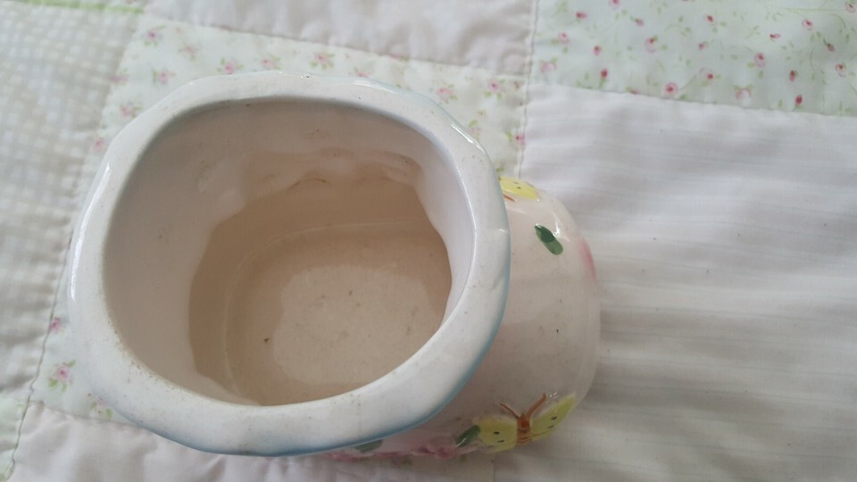 Vintage Ceramic Baby Boot Planter With Butterflies, Flowers Bow