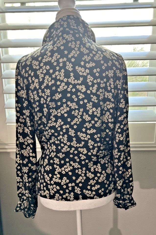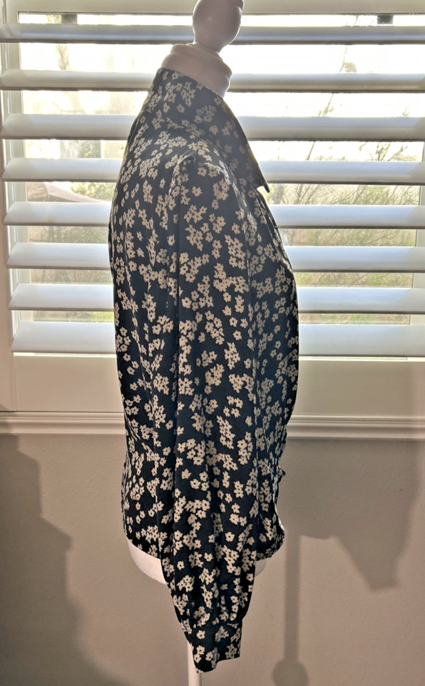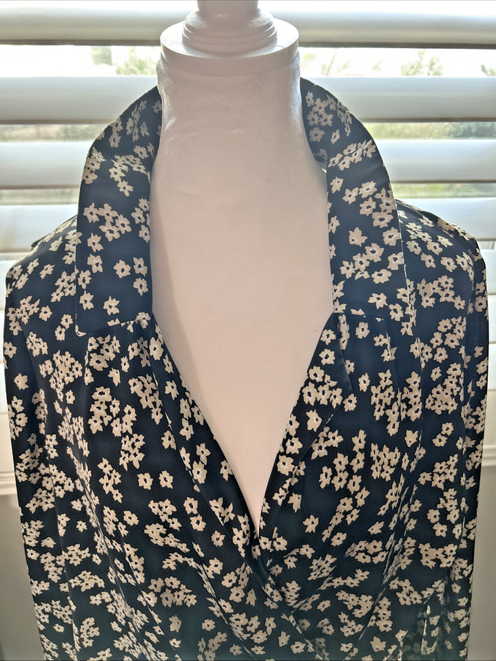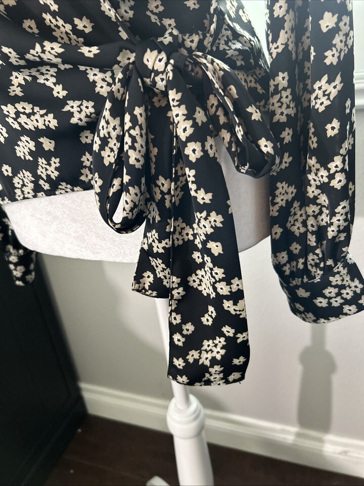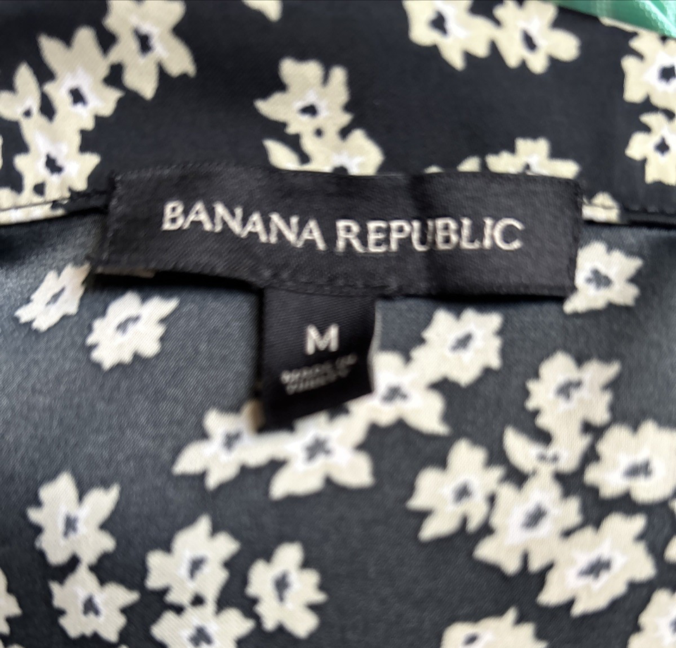 Banana Republic Black Floral Satin Wrap Top Womens MED Long Sleeve, Pre-Owned