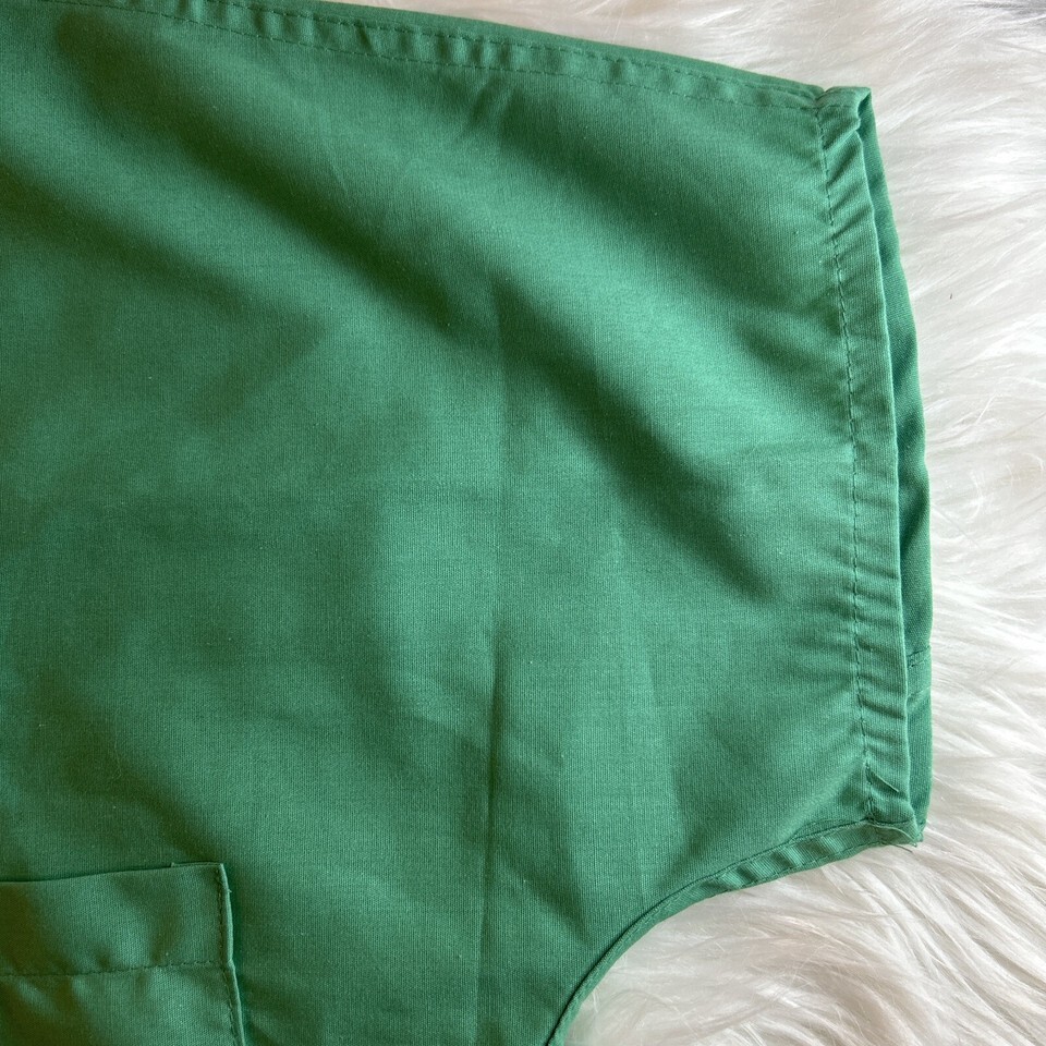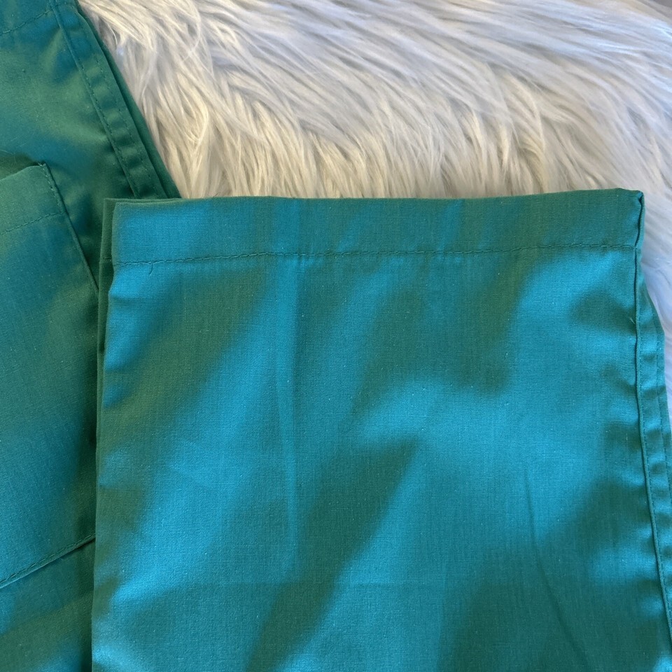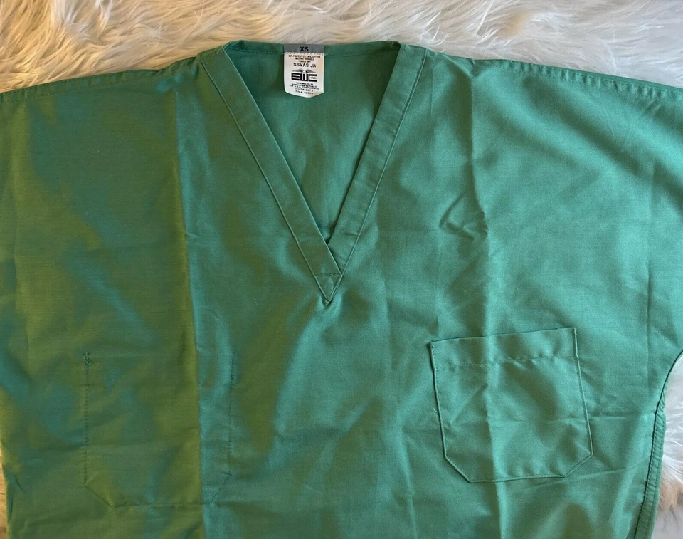 This Eagle Work Clothes, Inc. unisex scrub set in size XS is perfect for anyone working in the medical field or in need of comfortable work attire. The set includes a short sleeve reversible scrub top and pants, both in a refreshing jade green color. The cotton blend material makes it breathable and easy to wear for long hours.