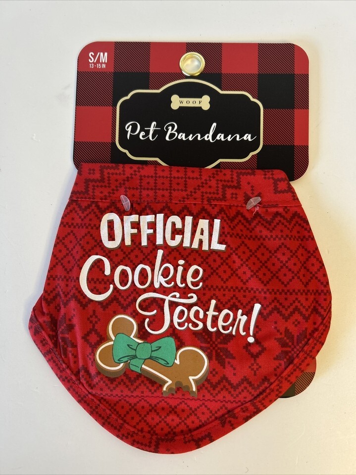 WOOF Holiday Pet Dog Bandana Official Cookie Tester Size Small / Medium-NEW!
