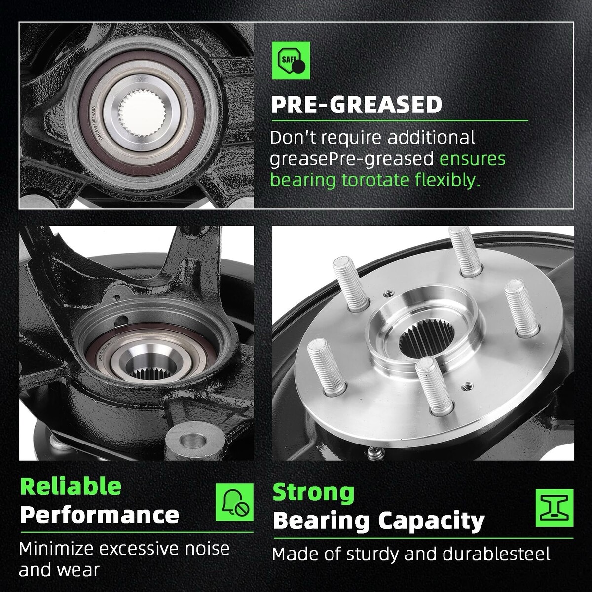 The knuckle comes pre-assembled with the wheel bearing and hub installed for faster, easier installation. Ideal replacement for worn, damaged, or noisy front hub assemblies. Fully inspected and ready for service.