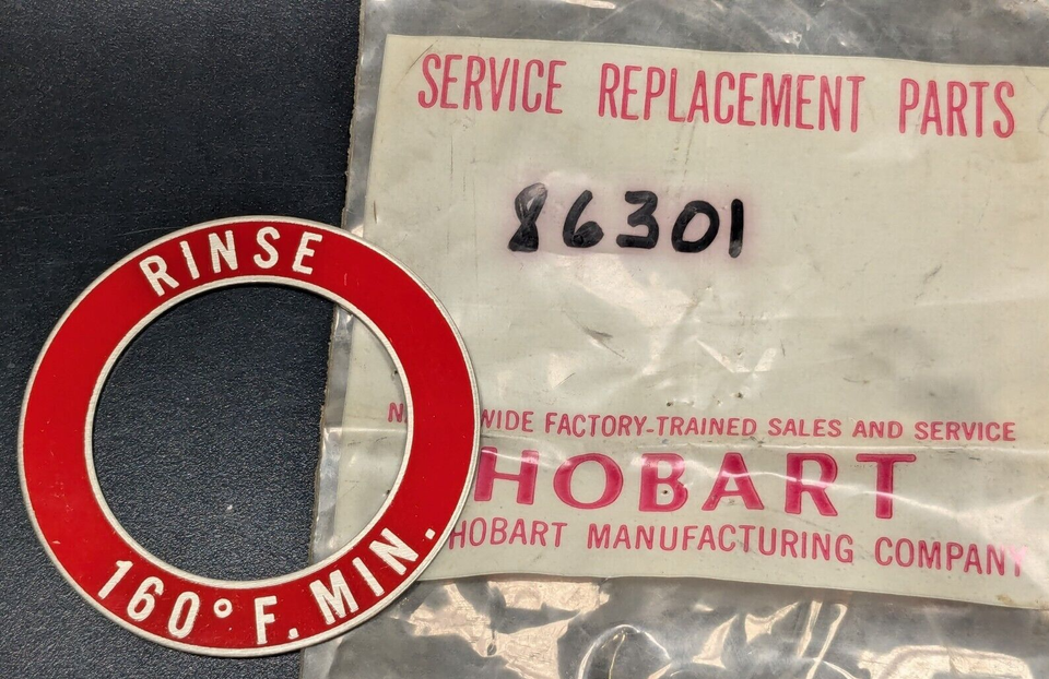 NOS Vintage Hobart - Red "RINSE 160 F MIN. " Warning Ring - Part# 86301