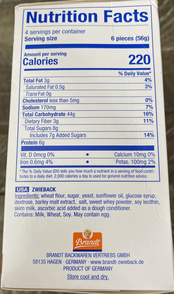 Brandt Zwieback Rusk 8 Oz Box-Product Of Germany-Oh So Good.