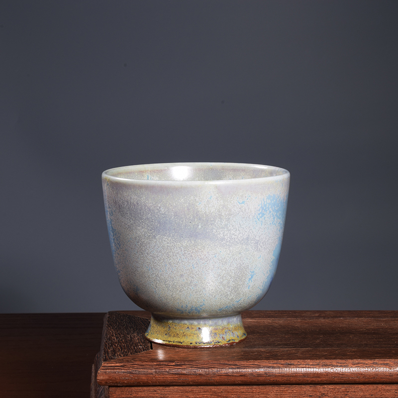 Handmade Chinese Jun Glaze Ceramic Teacup - Unique Kiln-Changed Blue Tea Cup