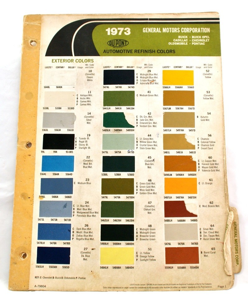 1973 GM Buick/Chevrolet/Olds/Pontiac/Cadillac Exterior Color