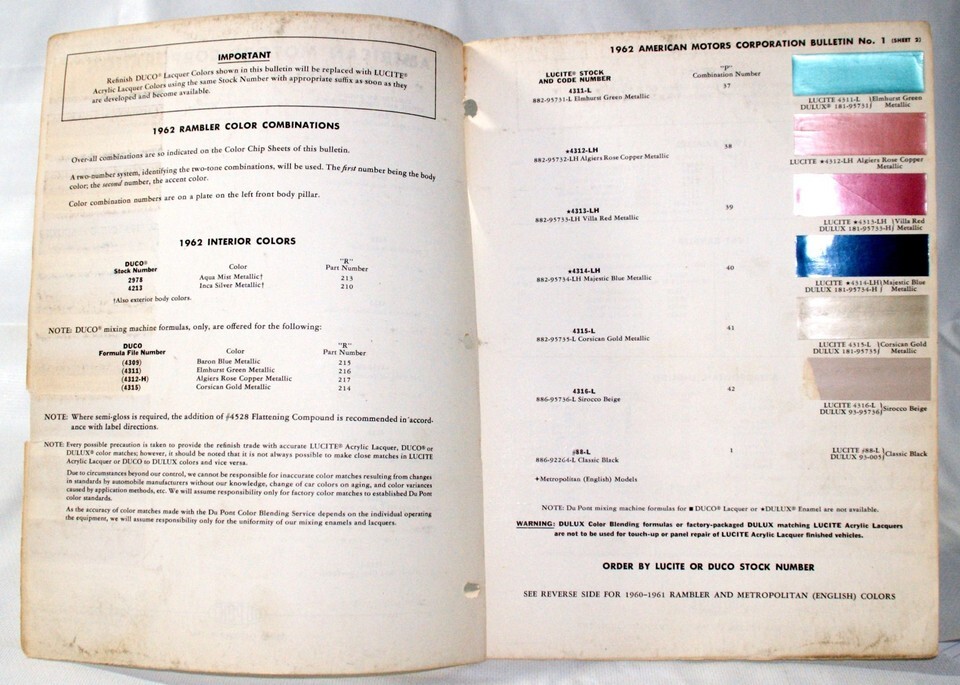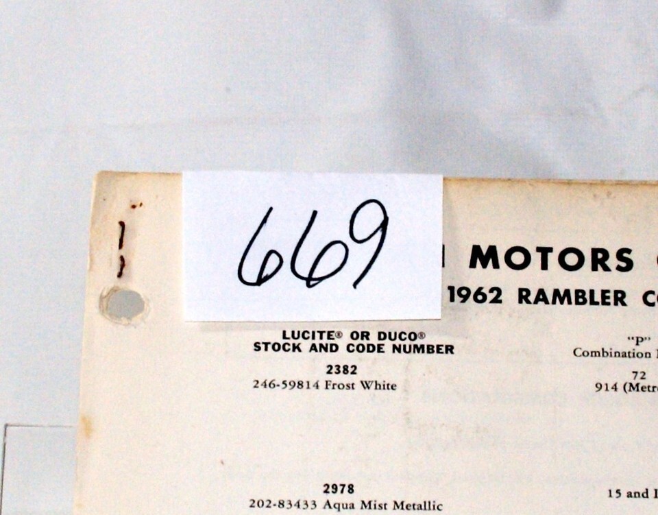 1962 American Motors Corp. Exterior / Interior Color Numbers 669