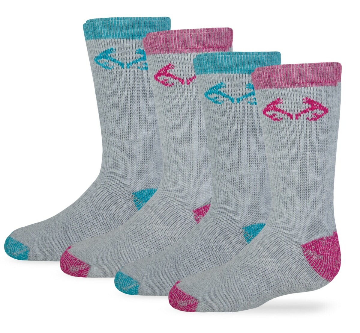 Realtree Girls Youth Boot Socks Merino Wool Cushion Outdoor Crew Pink Blue 4PK