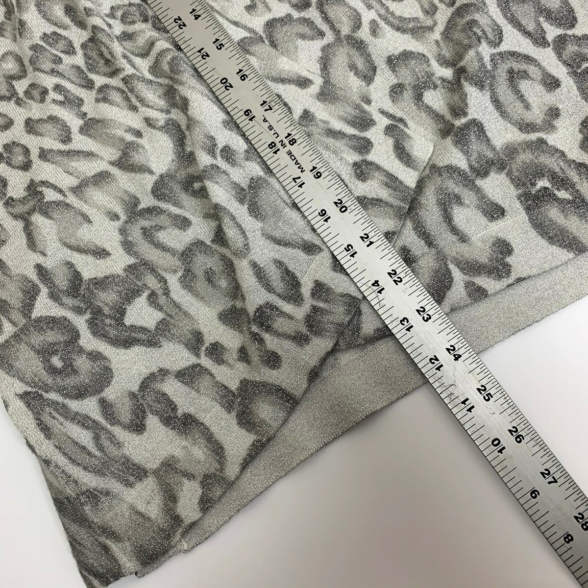 Chicos Cardigan Sweater Animal Print Metallic 3/4 Sleeve Gray Size 0 Small