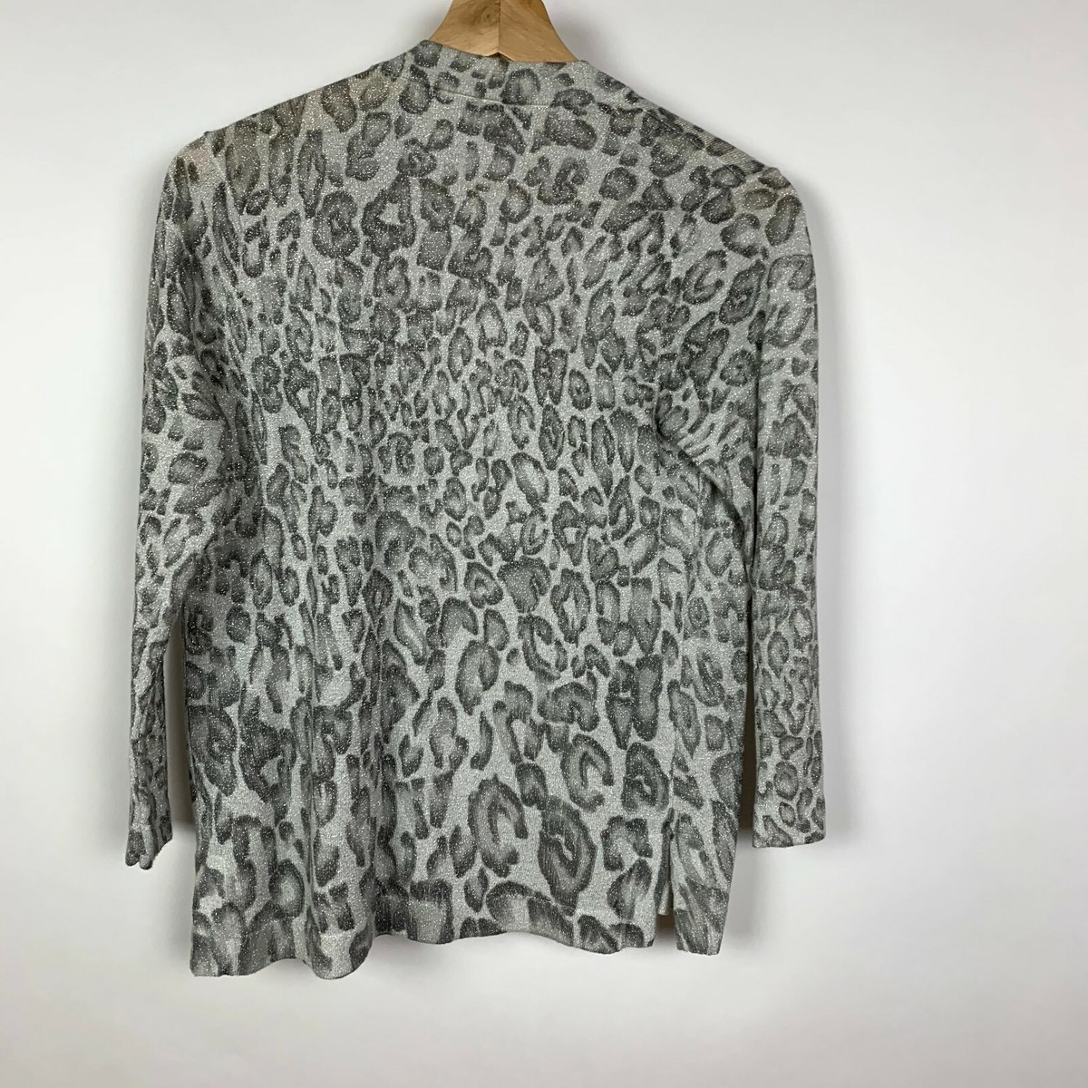 Item Type/Style: Open Front Cardigan Sweater Animal Print Metallic 3/4 Sleeve