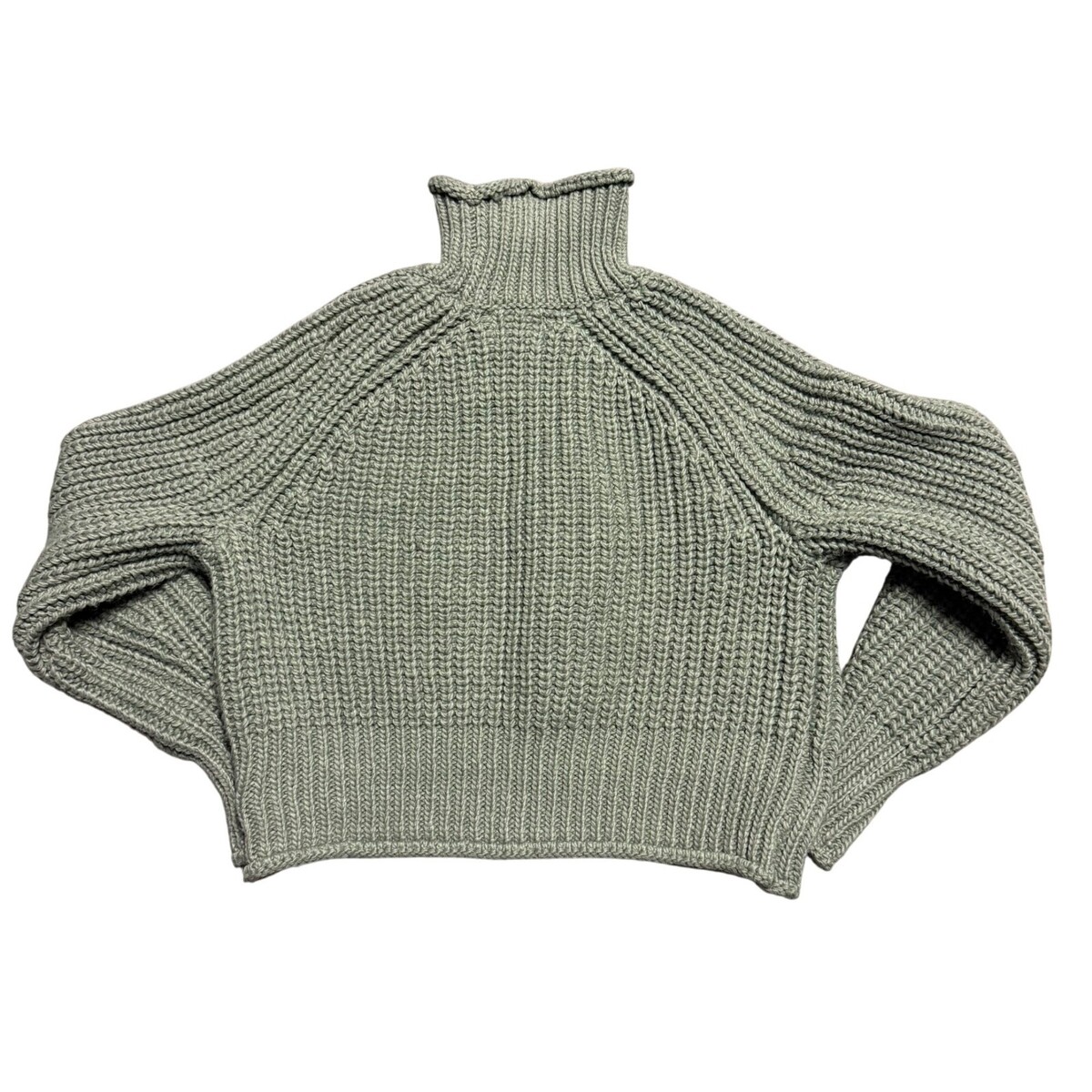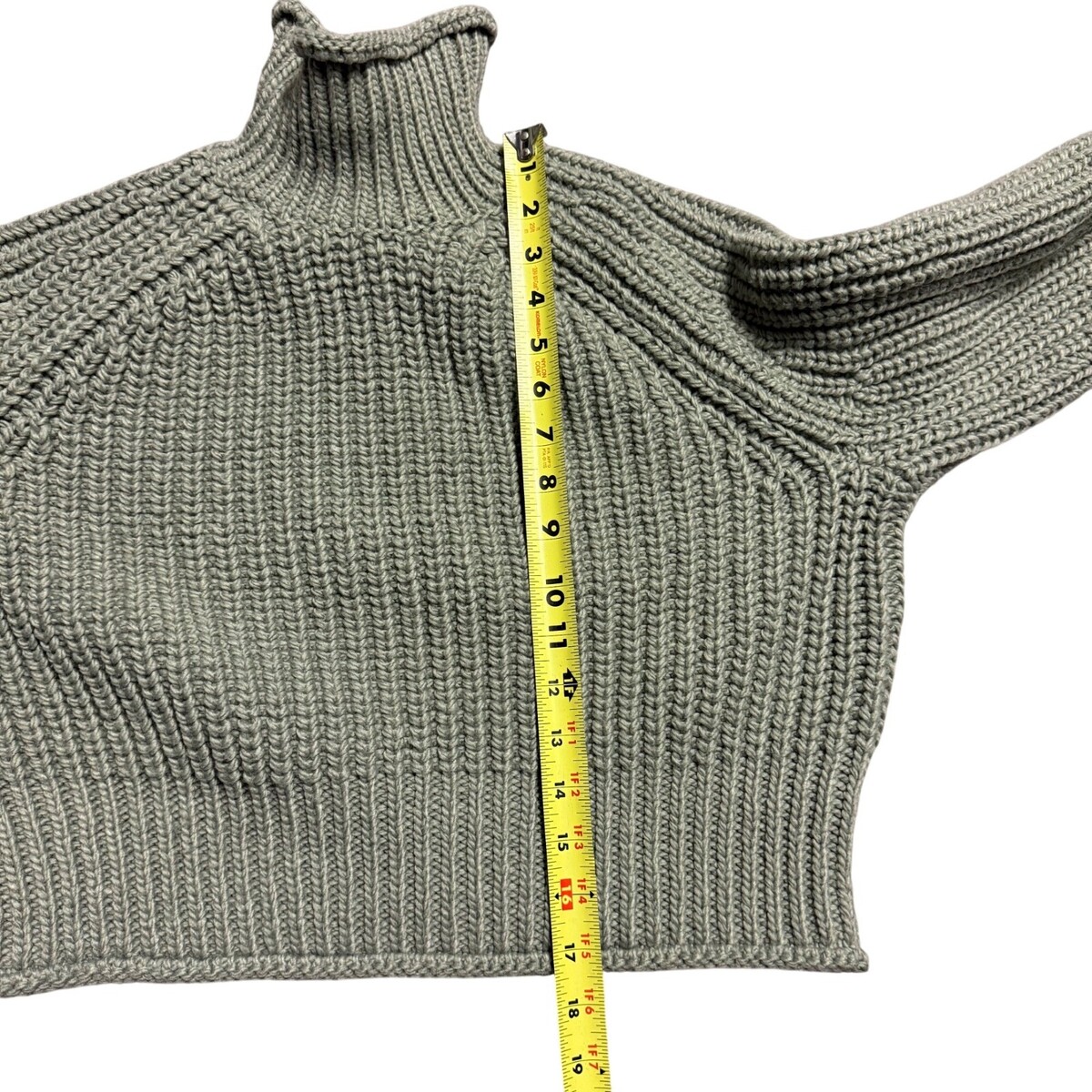 H M Womens Ribbed Knit Cropped Turtleneck Sweater US Small Sage Green Acrylic/Polyester