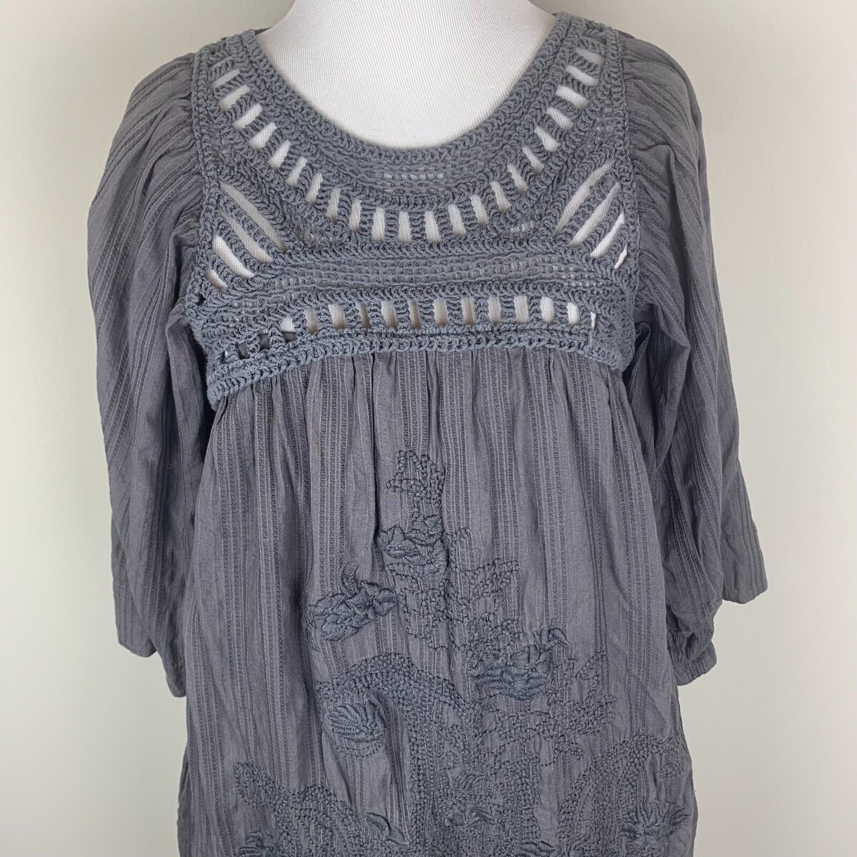 Mango Suit Womens Dress Gray Size 4 Floral Embroidered Design Crew Neckline
