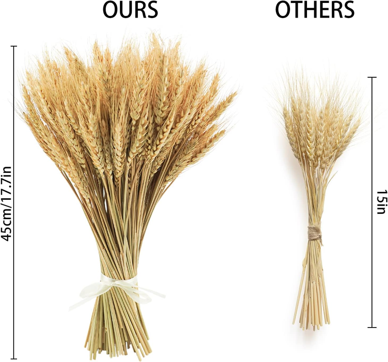 600 STEMS WHEAT SHEAVES: 600 stems wheat stalks in one wheat bunch, 18 inches length is much taller than others. Upgraded package of dried flowers ensure that the wheat stalks are in a intact condition.