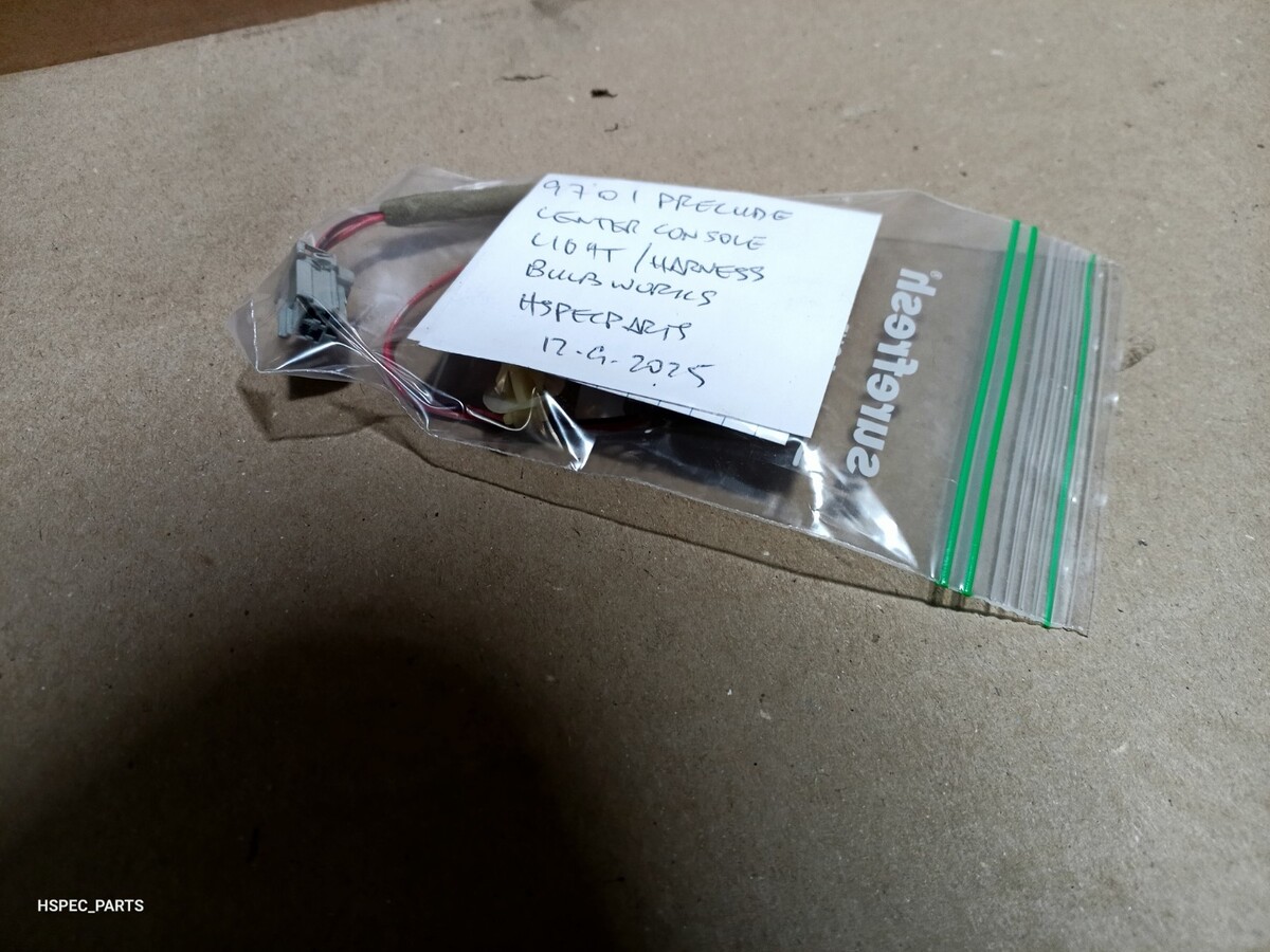 GOOD USED CONDITION. CENTER CONSOLE LIGHT SOCKET HARNESS WITH WORKING BULB. FROM A 1998 PRELUDE. YOU WILL NEED A LONG NEEDLE NOSE TO INSTALL. SHIPS USPS WITHIN A BUSINESS DAY OF PAYMENT.