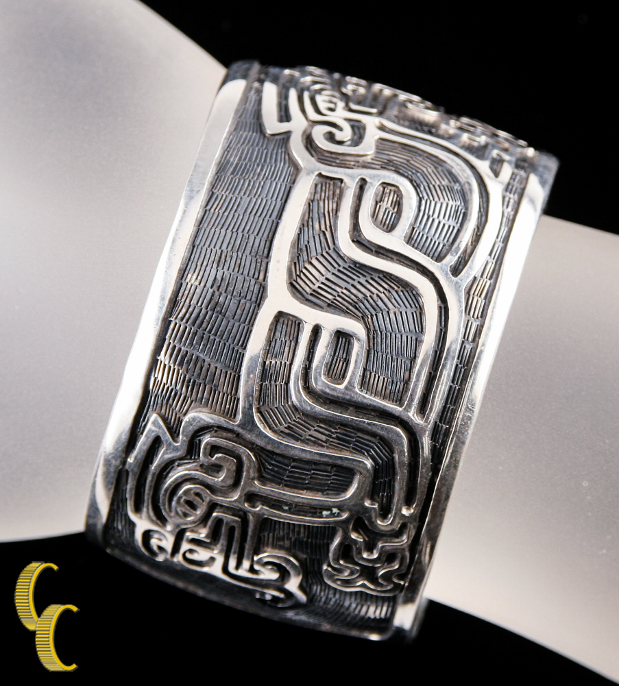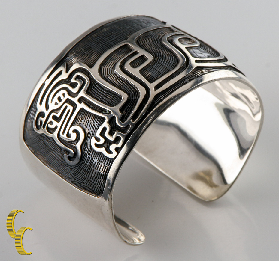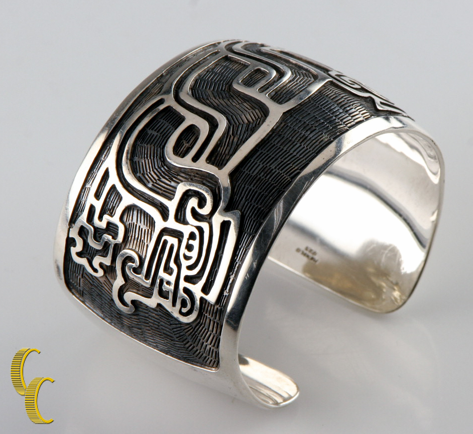 Sterling Silver .925 Two Headed Dragon Dog Wide Cuff Bracelet