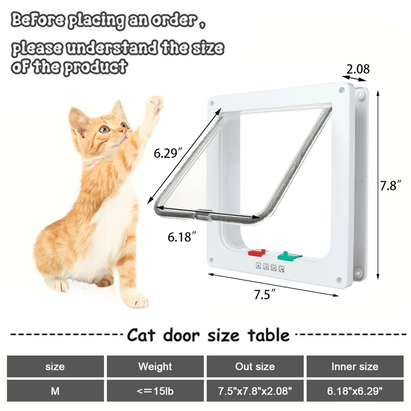 Cat Door, (Outer Size 7.5" X 7.8") 4 Way Locking Cat Flap Door for Interior Exte