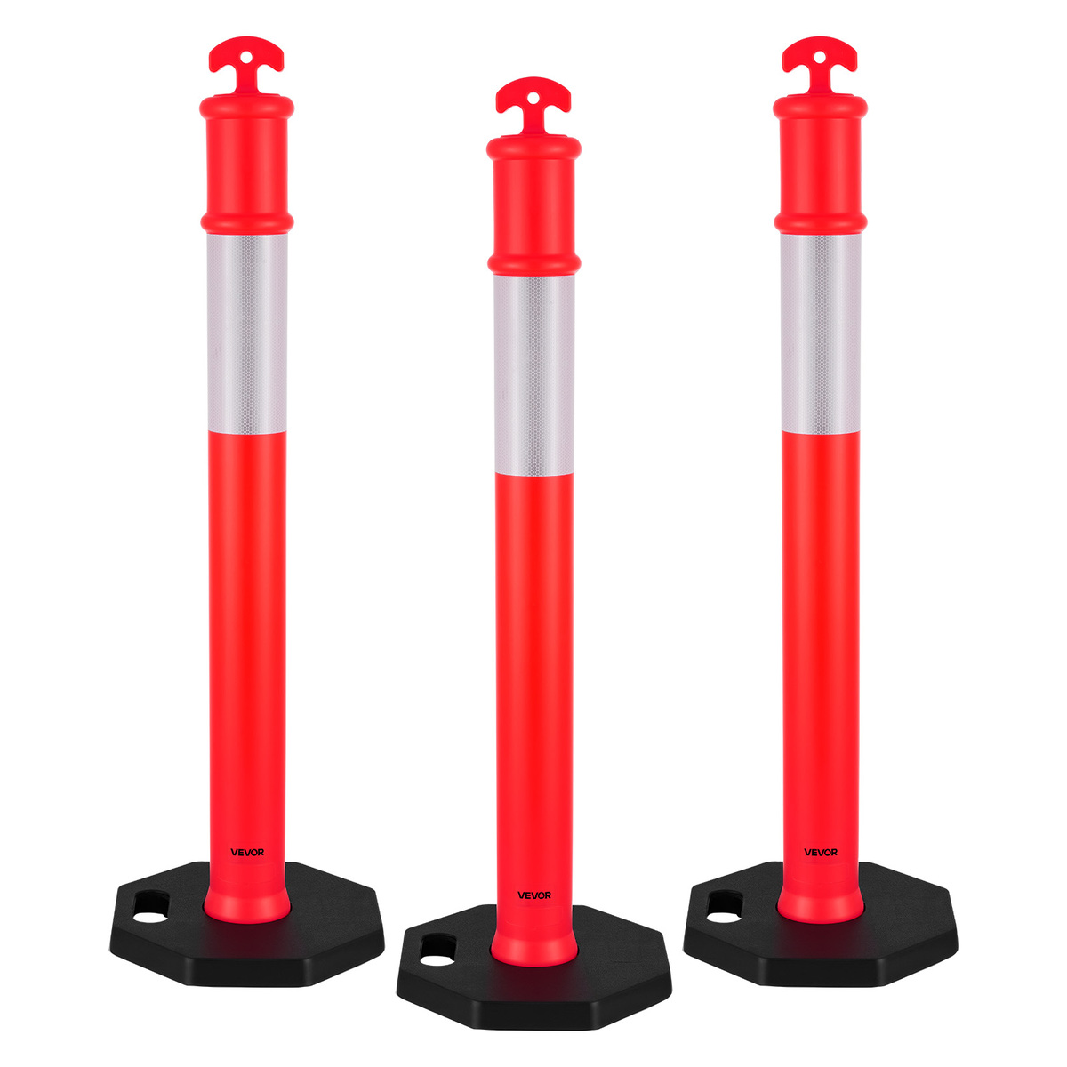 VEVOR 3 Pack Traffic Delineator Posts, 44.88 inches Traffic Safety Cones, Red