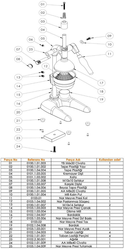 It passes less pulp with its improved design. The spongy structure of the fruits is suitable for the squeezed juice to be reabsorbed through the strainer. Thanks to its preventive graded and angled hole system, high clamping performance is achieved.