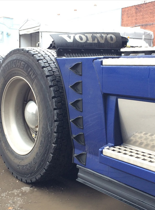 Tractor: The ideal surface is flat but EcoFins can be installed on slightly curved surfaces as long as the leading edge is absolutely flush and the majority of the tape is in contact. If the pointed tip is slightly raised, it poses no performance degradation. Installation: Do not install on flexible side extender rubber strips, exhaust stacks, or heat shields.