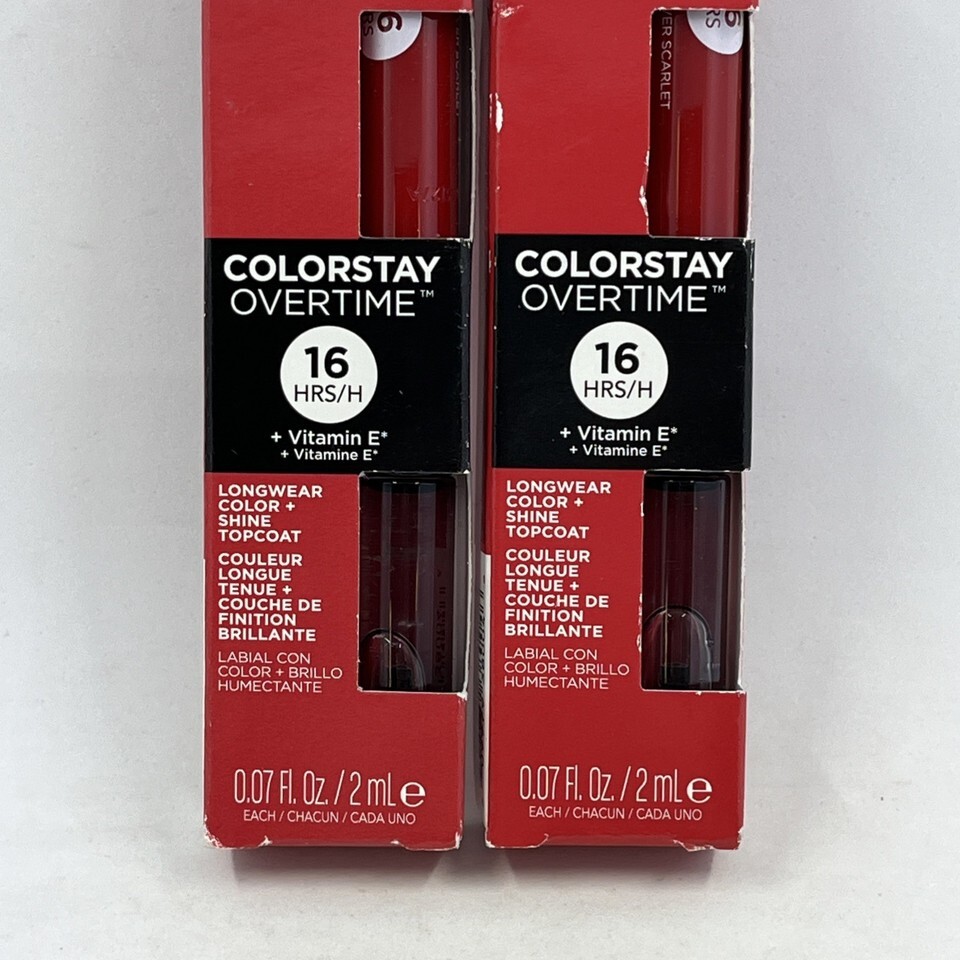 Revlon ColorStay Overtime Longwear Lip Color 040 Forever Scarlett W Gloss Lot 2