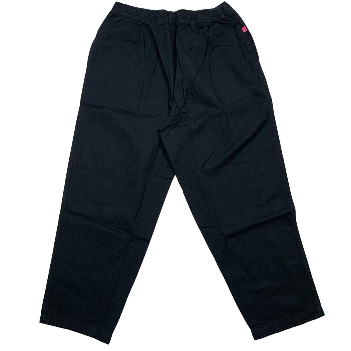 Comfortable and versatile black pants with an elastic waistband. Ideal for casual wear.