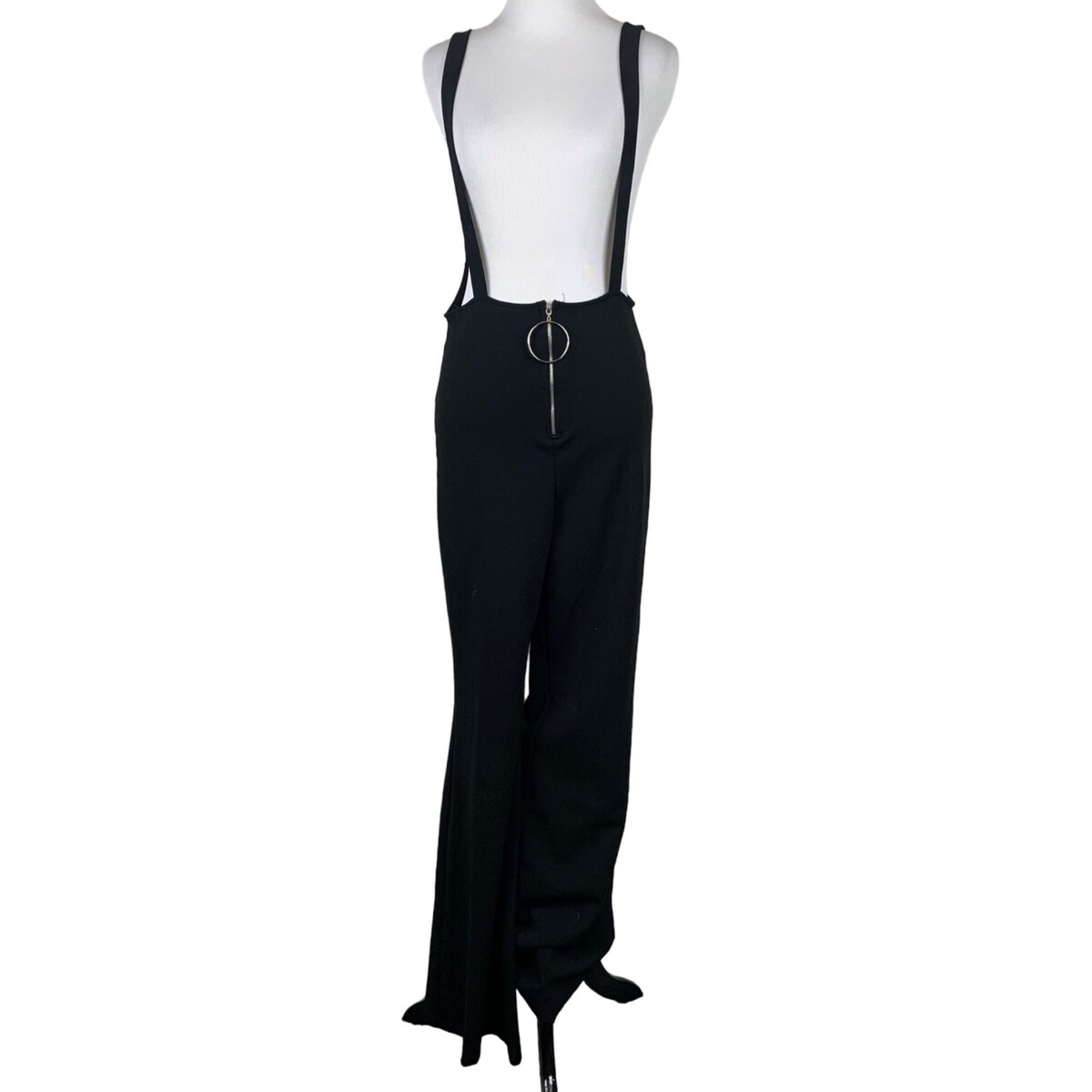 Fashion Nova Black Suspender Pants With Zipper & Ring Detail Jumpsuit wide leg
