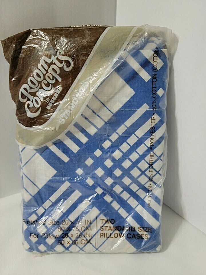 Vtg SEALED Geometric Pillowcases Navy Royal and similar items