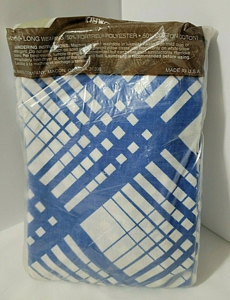 Vtg SEALED Geometric Pillowcases Navy Royal Blue White 2 Standard Size BIBB