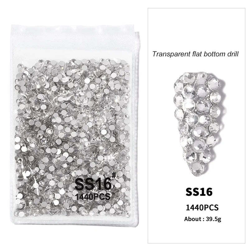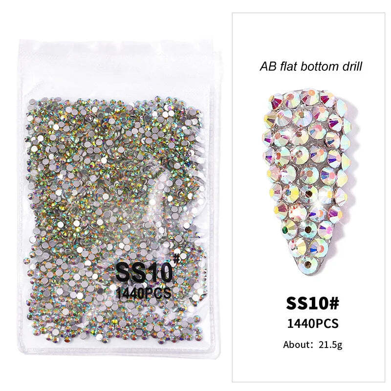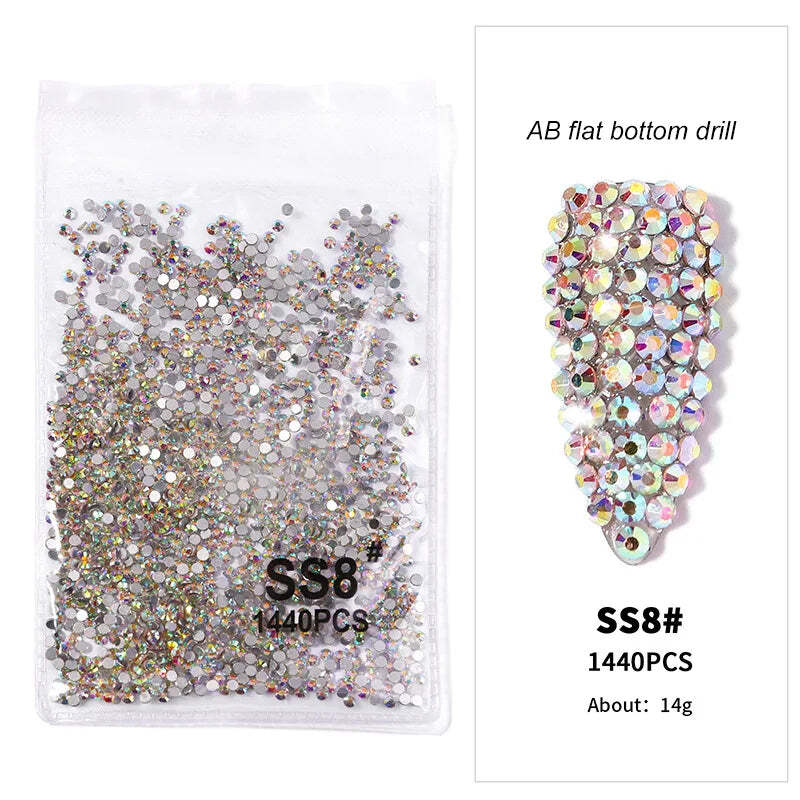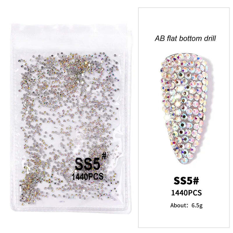 1440pcs Nail FlatBack Crystal Rhinestone Clear/AB Glass Strass (SS3-SS20) 3D Nail Gem Stones Non-HotFix Nail Rhinestone 1.3-4.8mm