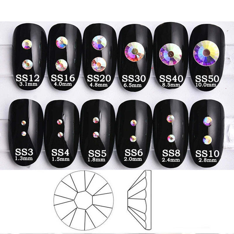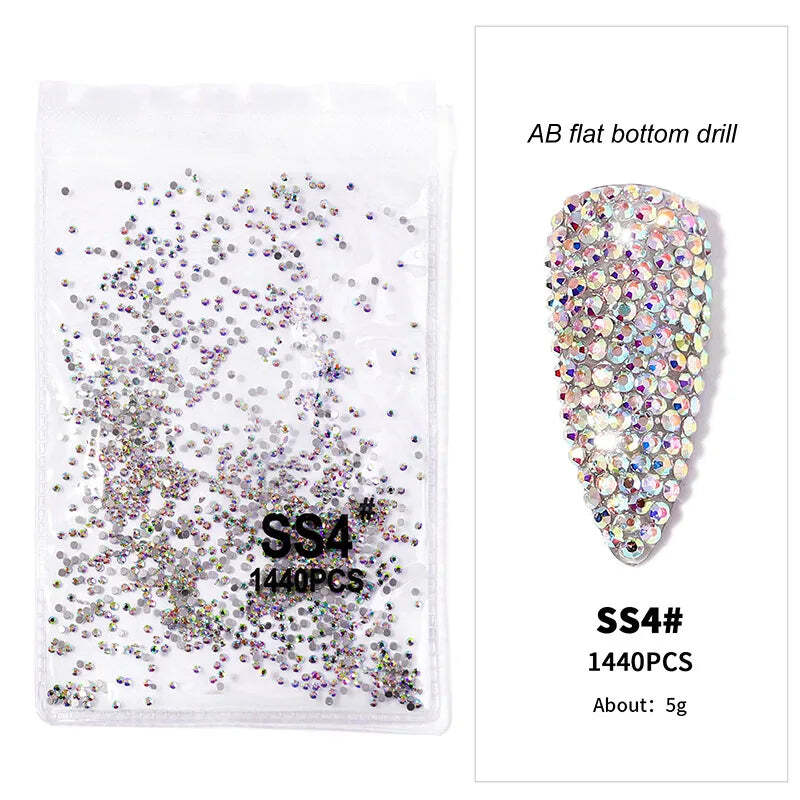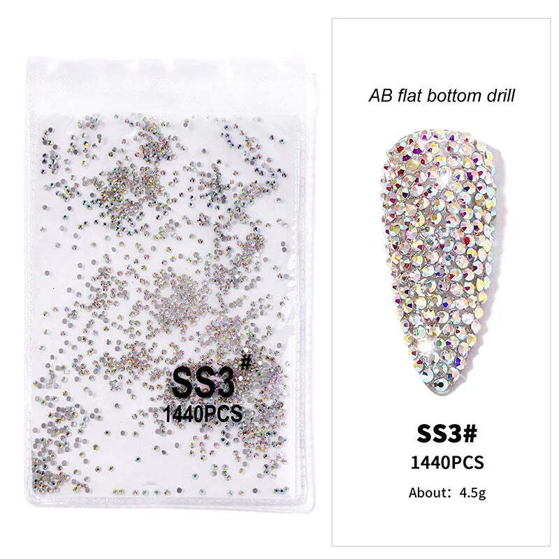 1440pcs Nail FlatBack Crystal Rhinestone Clear/AB Glass Strass (SS3-SS20) – Dazzling 3D Nail Gem Stones