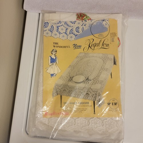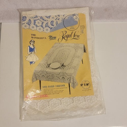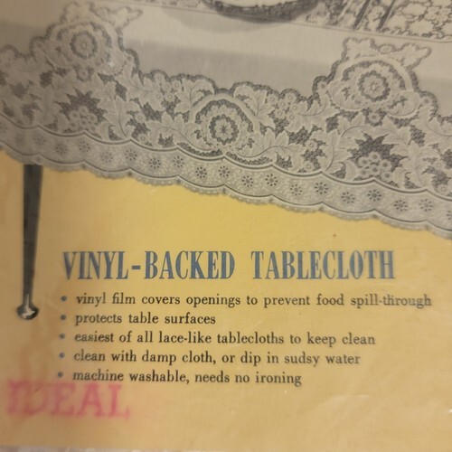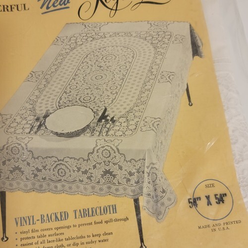 New Vintage Quaker Style Decorative Vinyl Backed Tablecloth White Square 54" X 54"