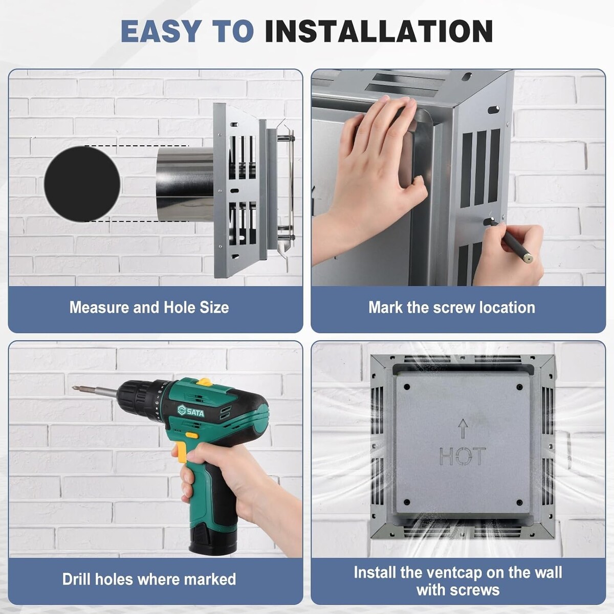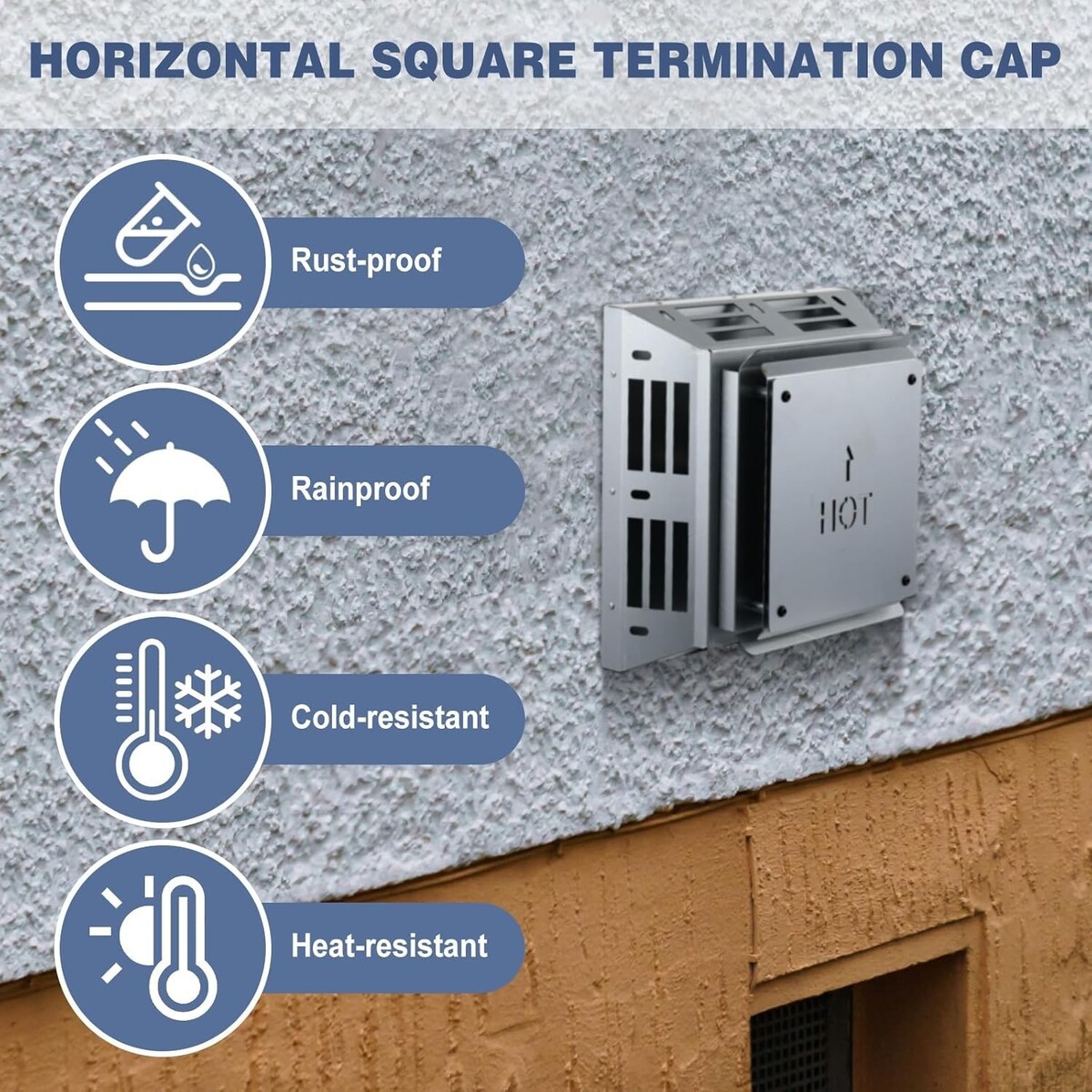 Heavy Duty Construction: crafted from thickened 0.04 inch galvanized steel, this horizontal square termination cap offers better strength and rust resistance. The rear round vent features 0.07 inch thick 201 stainless steel-far more durable than typical 0.02 inch versions on the market. Designed to withstand pressure during transport or installation without denting or deformation