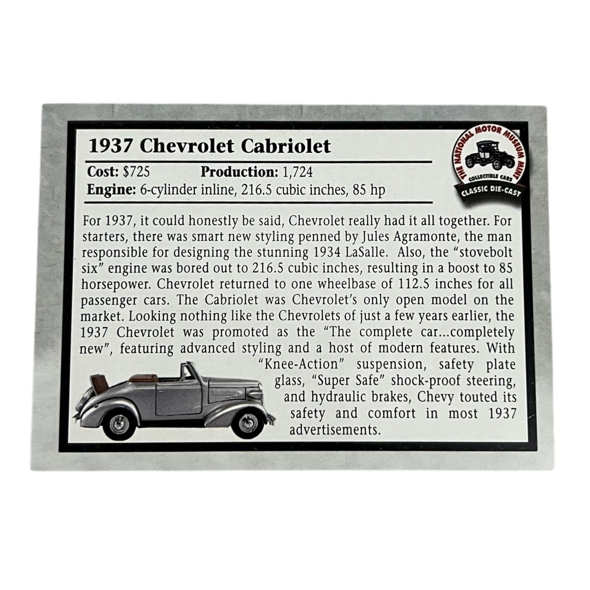 VTG 1937 Chevrolet Cabriolet 1/32 Diecast Car Natl Motor Museum Mint Opens